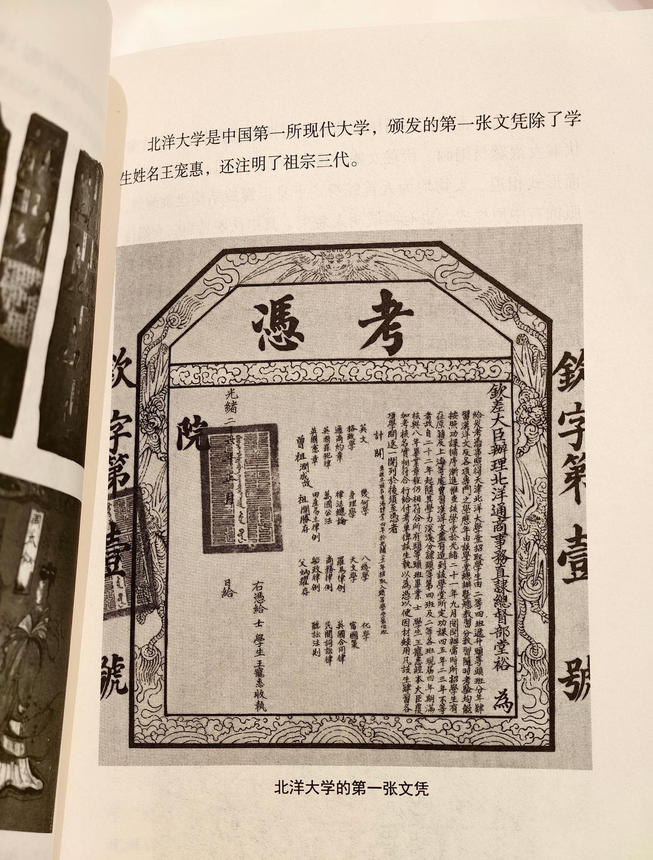 今天10月2日是北洋—天津大学130年校庆日。 恰在我出的这本新书的章节文物中,特意放了王宠惠的毕业证书。这是中国大学的第一张毕业证,是中国近现代高等教育的开端见证。 早一百年间,多次改朝换代,经历战乱运动,学校分分合合。北迁、更名、院系大调整,花堤北运放在了今日河北工业大学,留下的是校歌的开口记忆。百年校庆时,部分老校友执着多次上书要求恢复北洋大学校名。如今的天大人,没了这个念想。近三十年间,是整个社会的科技大发展和意识大迭代。一代人翻页了,唯不变的——“实事求是”那几个字。