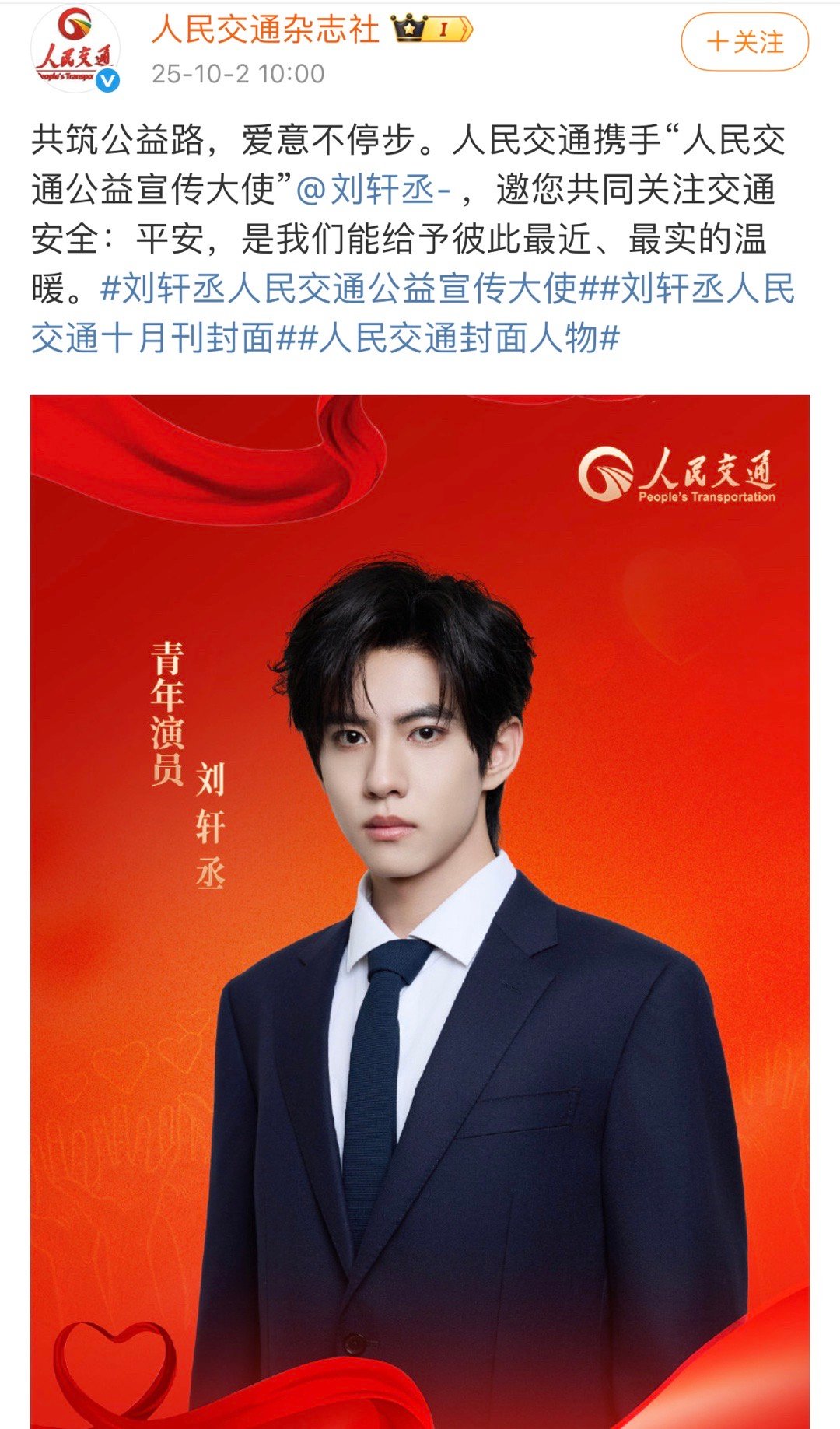 刘轩丞的人民交通公益宣传大使官宣了,优秀啊