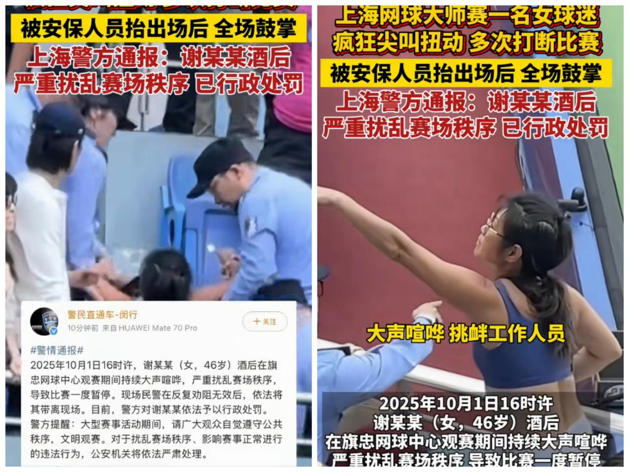 上海网球大师赛赛场干扰比赛的“户照姐”,是不会被驱逐出镜的,行为虽违规但没违法,