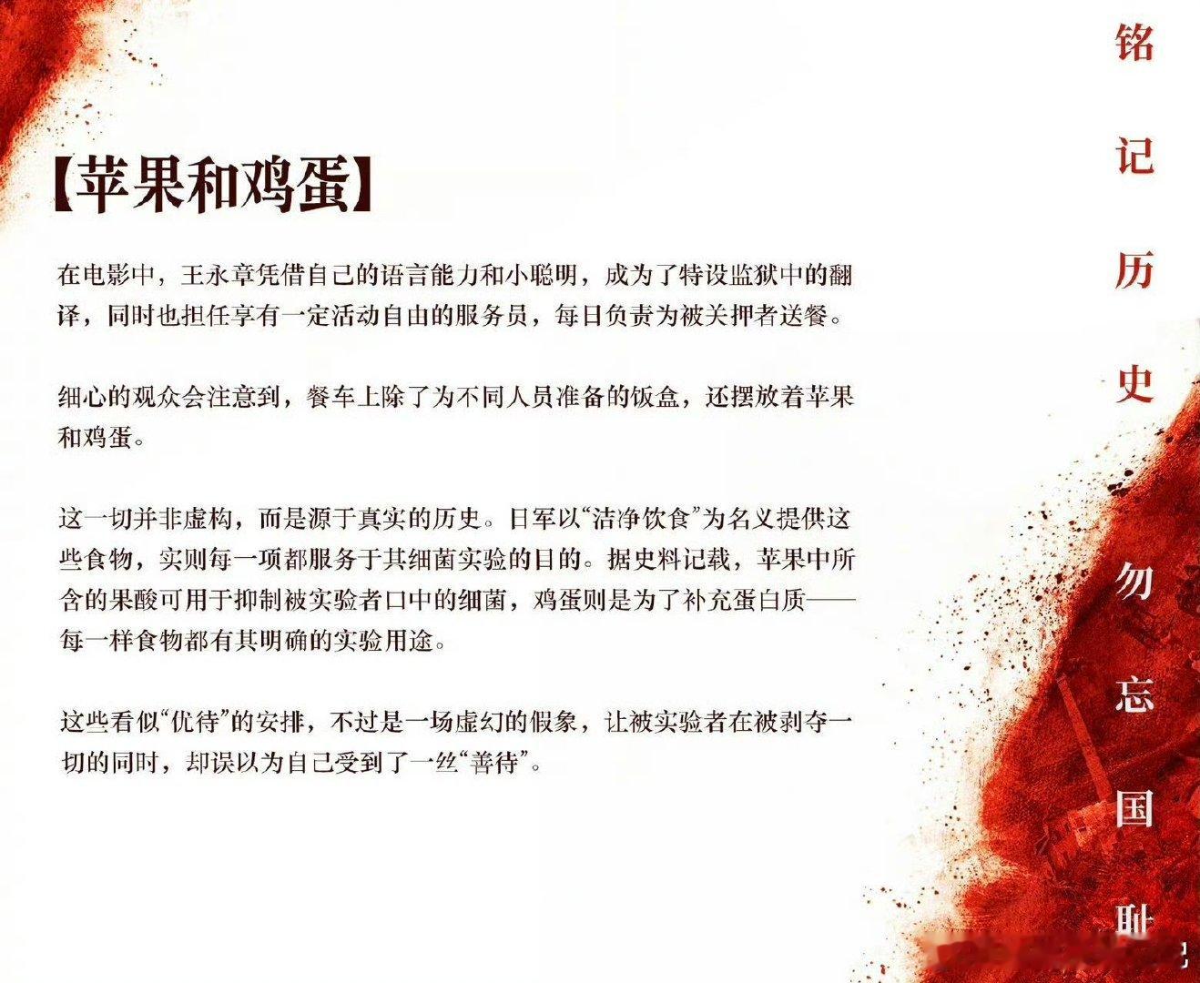 731里的苹果不是用来吃的 别被《731》里的苹果骗了!它早不是平安象征,是日军的骗局:一边当“营养供给”,一边做“杀菌工具”。小女孩为多一个苹果伸臂,鲜血染红苹果,字字泣血诉说罪恶。