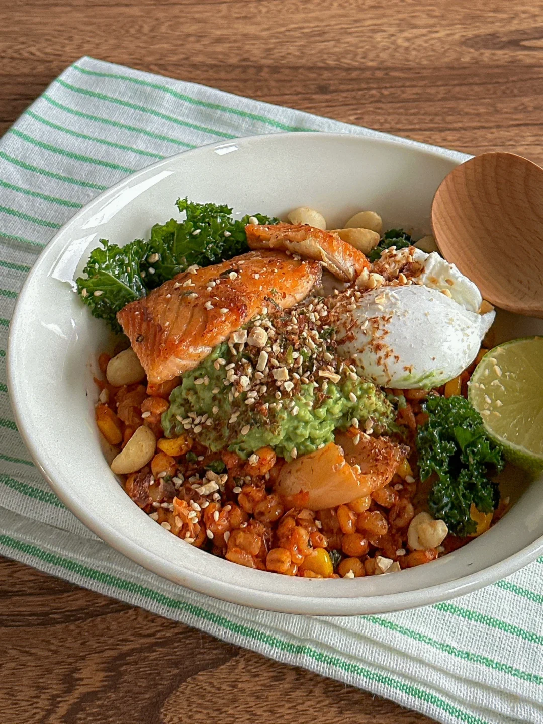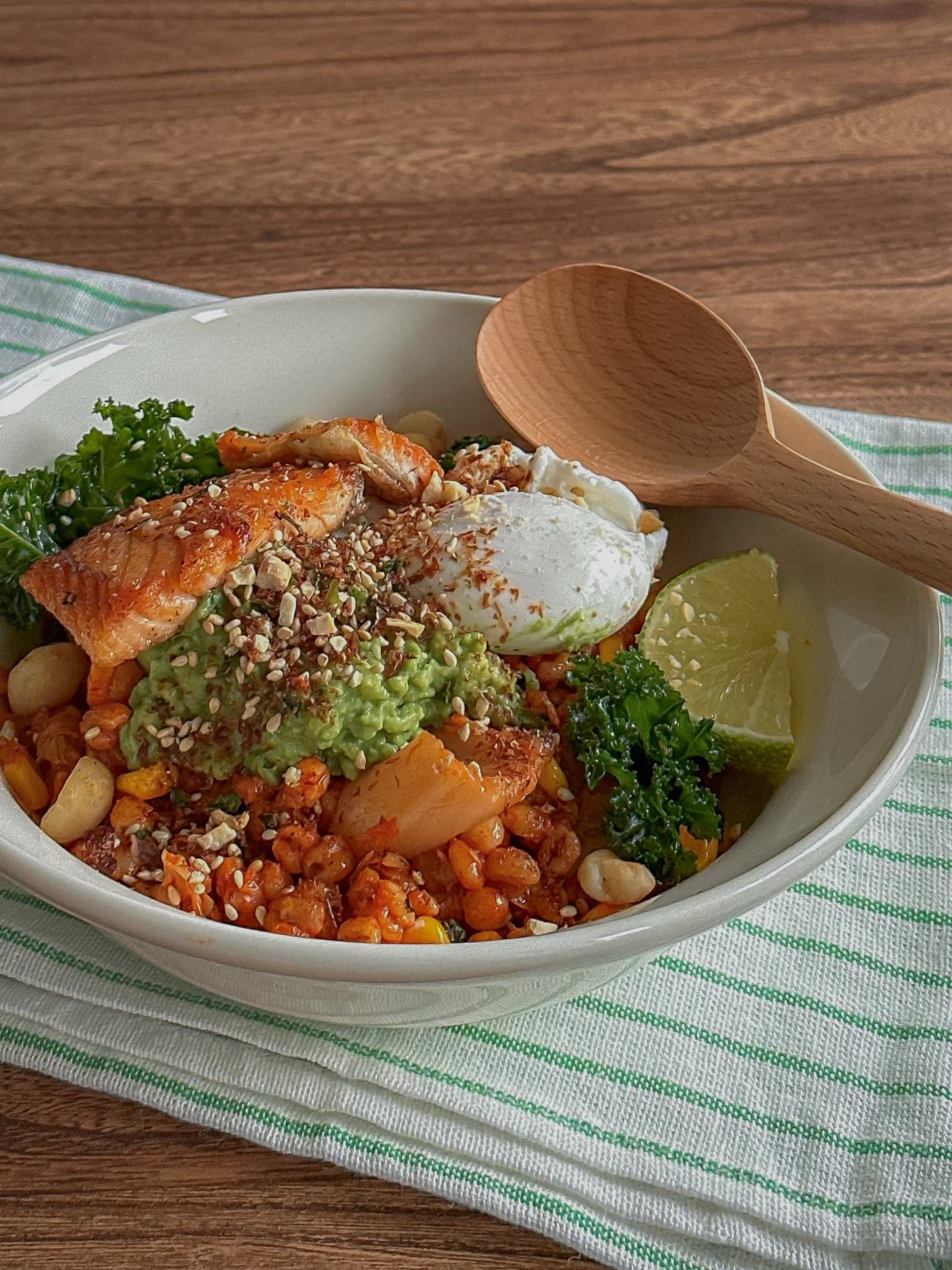 三文鱼表皮脆脆的,加了爱吃的牛油果酱🥑