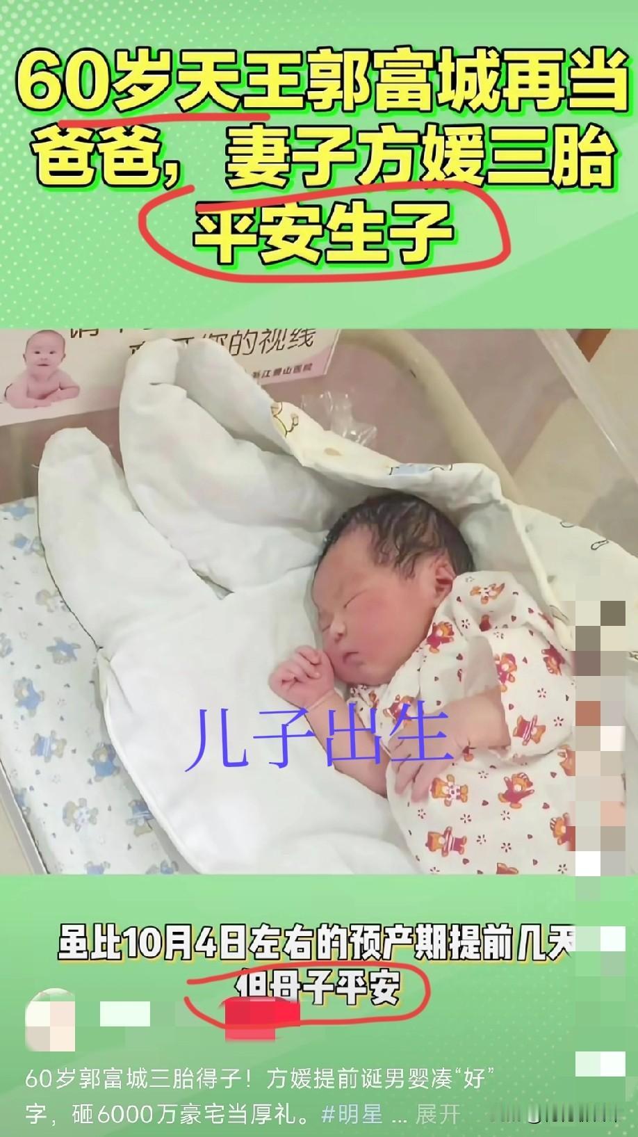 这一夜, 郭富城怕是要偷着乐坏了, 因为方媛提前生下了儿子,让他成了四大天王里首个有儿子的人! 别光说天王宠妻,这次是把重视刻进细节里。早早就砸200万订了尖沙咀月子中心,56天的专属护理连米其林餐都安排上,哪是随便应付。 更实在的是,直接把6000万半山豪宅改成联名,送200万钻石项链,连副卡都取消限额变无限额。 他可不是只动嘴,为了陪产连爱驹获奖都缺席,还推掉澳门演唱会要专心陪家人。有人说这是重男轻女,但换个角度看,这更是对方媛三胎付出的认可。 方媛自己也够争气,孕期搞事业还考证书,可不是靠谁依附。这种双向的奔赴才真难得,你们觉得这波宠爱是真情还是另有原因?郭富城