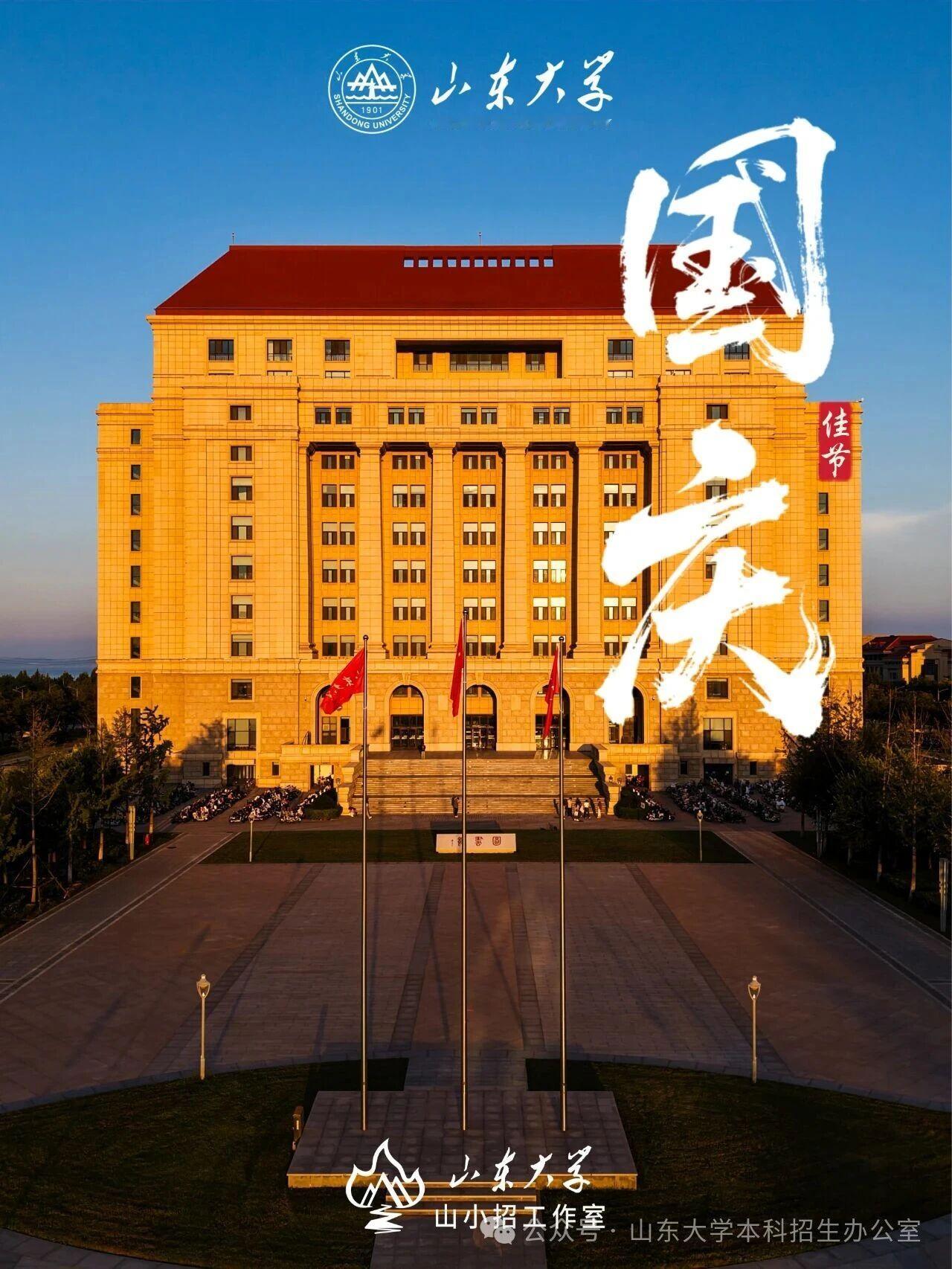 欢度国庆,喜迎华诞! 金秋送爽,万里河山披锦绣 丹桂飘香,举国欢腾庆华诞 在中华人民共和国成立76周年之际 山东大学本科招生办公室 祝福伟大祖国 国泰民安,繁荣昌盛! 愿每一位SDUer 都能在实现中国梦的伟大征程中 成长为挺膺担当的山大人! 欢迎关注新浪微博@山东大学本科招办 摄影 / 喻锦松 李泽群 邓梓轩 东野文哲 何浩然 文案&编辑 / 陈煜 责编 / 陈怡然 审核 / 姚慧璇