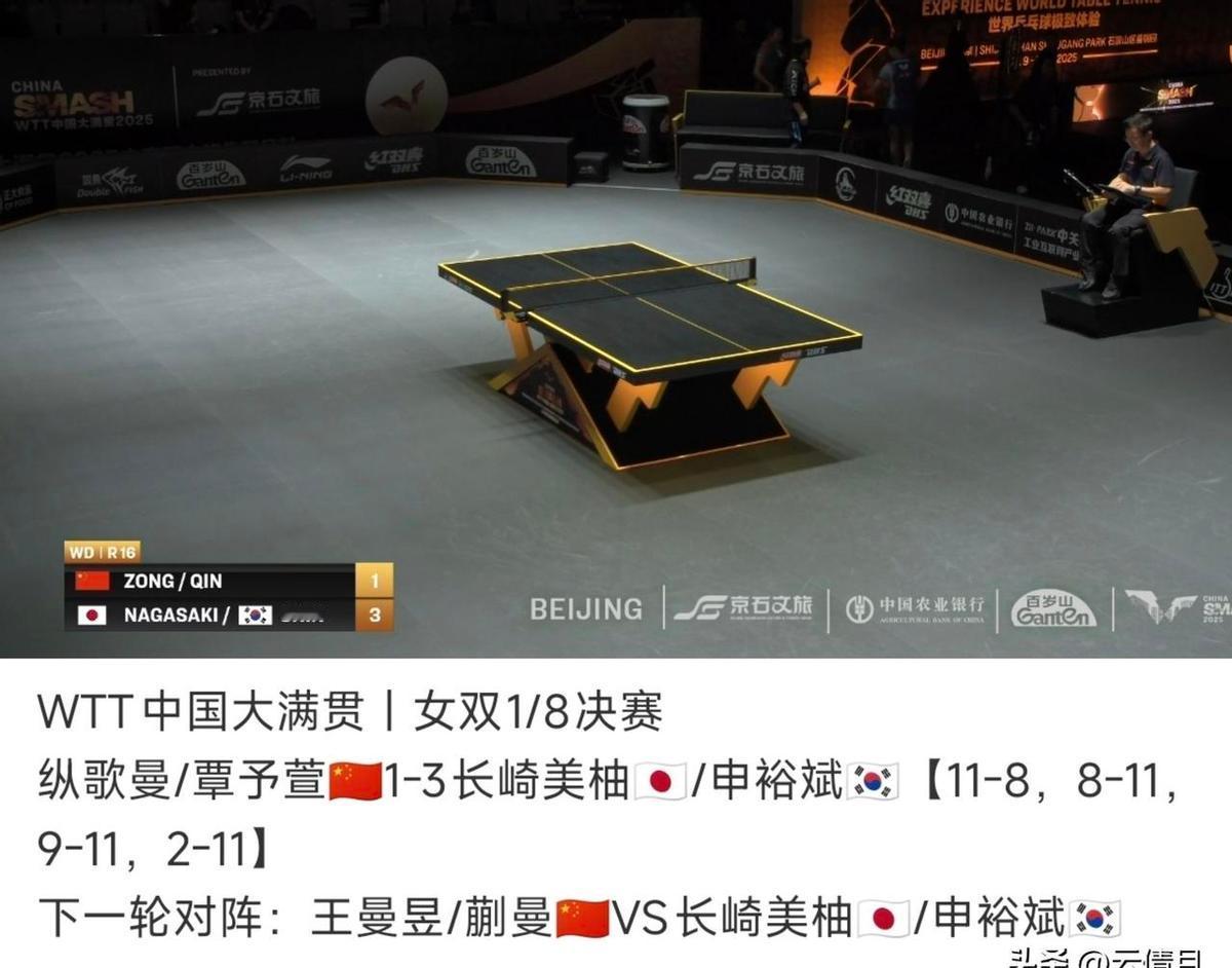 覃予萱和纵歌曼输得不冤。 对手不是偶然爆冷,是连斩头号种子、中国台北强档,一路杀进决赛的真黑马。 第四局2-11,不是崩盘,是被速度按在地上摩擦——发球没套路,接发抢不起来,前三板直接哑火。 国乒这俩18岁小姑娘,右手对右手,打不出变化,碰上日韩快撕快带,像拿筷子夹电风扇。 但教练组没躺平。 换左手搭档韩菲儿,拉来上海体院搞动作捕捉,闭门练发接发,直接对练申裕斌、长崎美柚的打法。 输一场,换来一套数据模型+三场封闭战,值。 大满贯输了,奥运周期才刚开局。 这次不是终点,是训练计划的启动键。