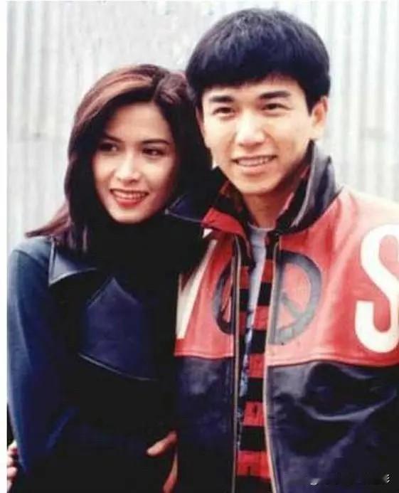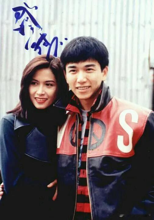 温兆伦邵美琪《第三类法庭》幕后合影 温兆伦穿着那件眼熟的红黑夹克,邵美琪头轻轻靠