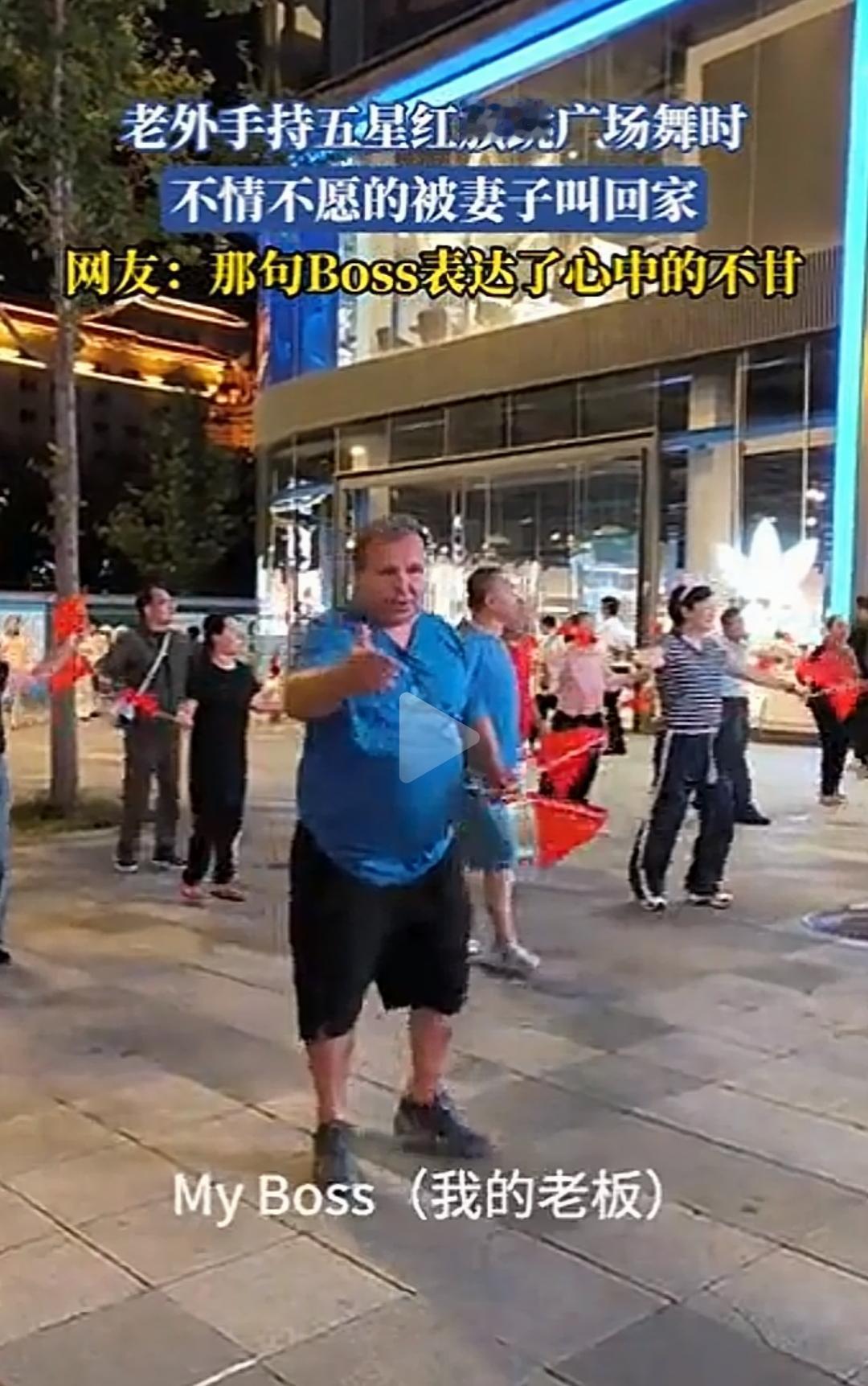 老外拿着中国国旗和大妈们跳广场舞,玩得不亦乐乎。嗯,直到他老婆来了……[笑哭][笑哭][笑哭] 一句MY BOSS!可以看得出他有多不情愿。 广场舞其实只要不扰民,还是很好的,既锻炼了身体,又有了社交,还能感受到生活的美好。 老外可能来中国之前这没有感受到这种幸福。 点右上角关注我,我们一起看这个魔幻的世界
