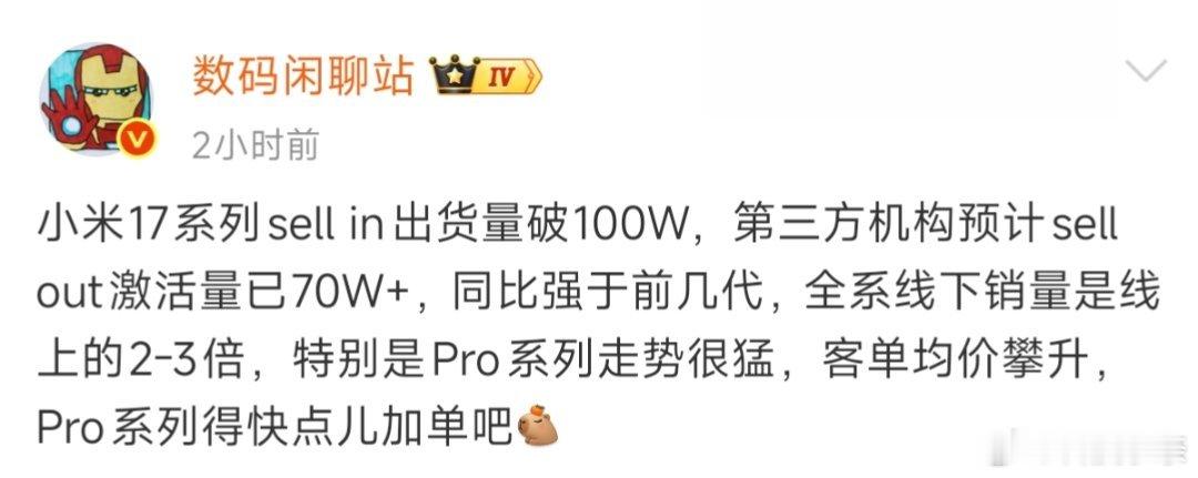小米17系列销量已超过100万台,其中尤其是Pro系列走势很猛!(据说光Pro Max就占了一半)