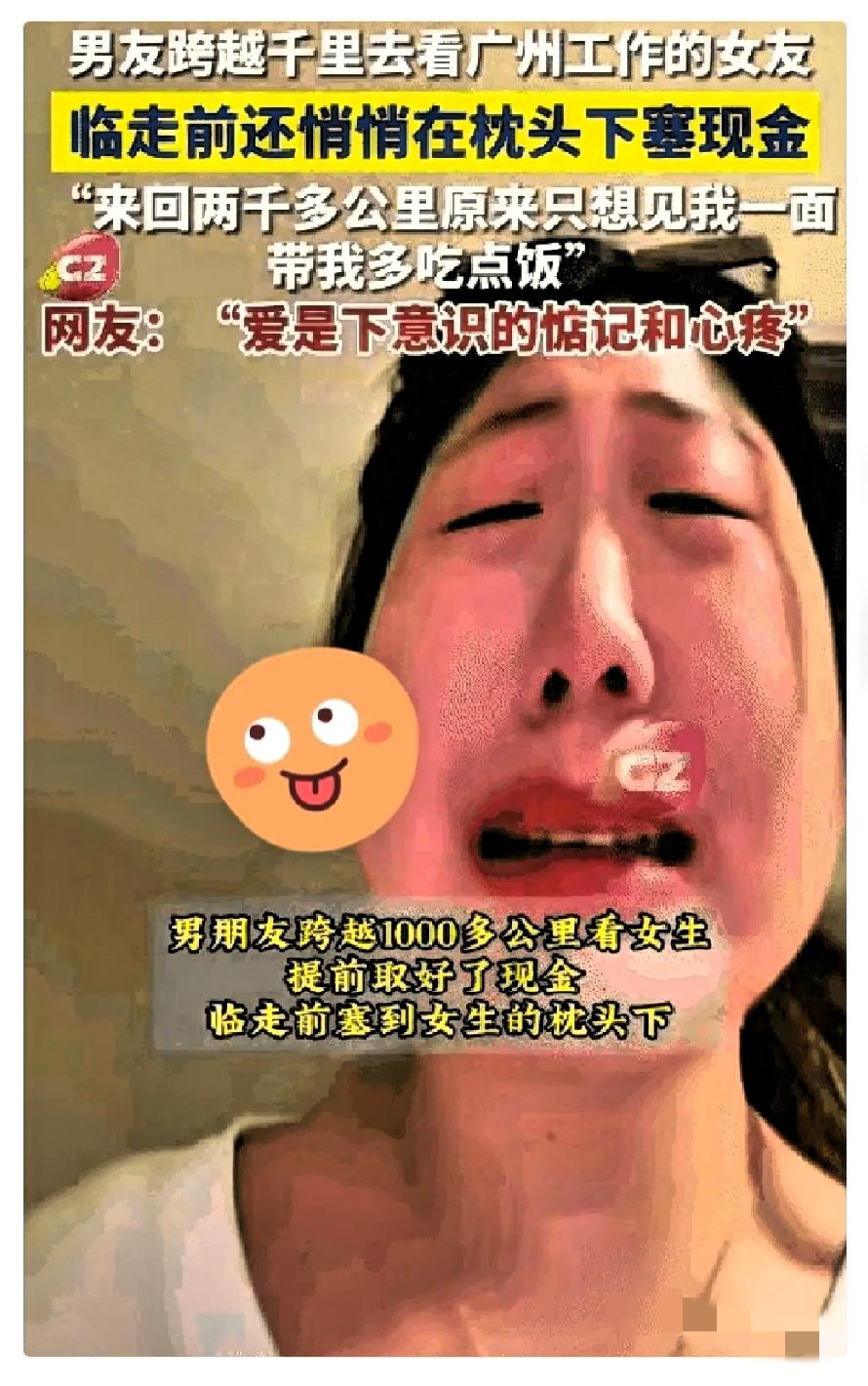 破防了!广州,女生和男友温存后,依依不舍送别男友,回家后竟然枕头下看到一沓现金,她瞬间就明白了,这是男友 怕她在外面吃不好,特意留下了一笔钱,让她在家好好吃饭,不用担心没钱吃饭。这就是爱吧,你远在千里之外,我牵挂在心里。 在谈恋爱的时候,异地恋最考验的就是两个人的定力和坚定。很多异地恋分手了,不是因为彼此不爱,而是没有看到未来,没有看到彼此努力的方向,于是选择放弃。 成功的异地恋,往往是能坚持下来的,同时也是两个人有一个清晰的目标,有未来的规划,还有就是两个人能够保持良好的联系,分享彼此的日常,沟通遇到的问题,而不是冷战,甚至分手。 枕头下那一沓现金,不仅仅是金钱,更是男友对她深切的牵挂,对她的爱的表达。 网友们说!现实不断证明,感情的催生还得金钱标示,感动的大哭需要金钱兑现[点亮平安灯][捂脸][捂脸]