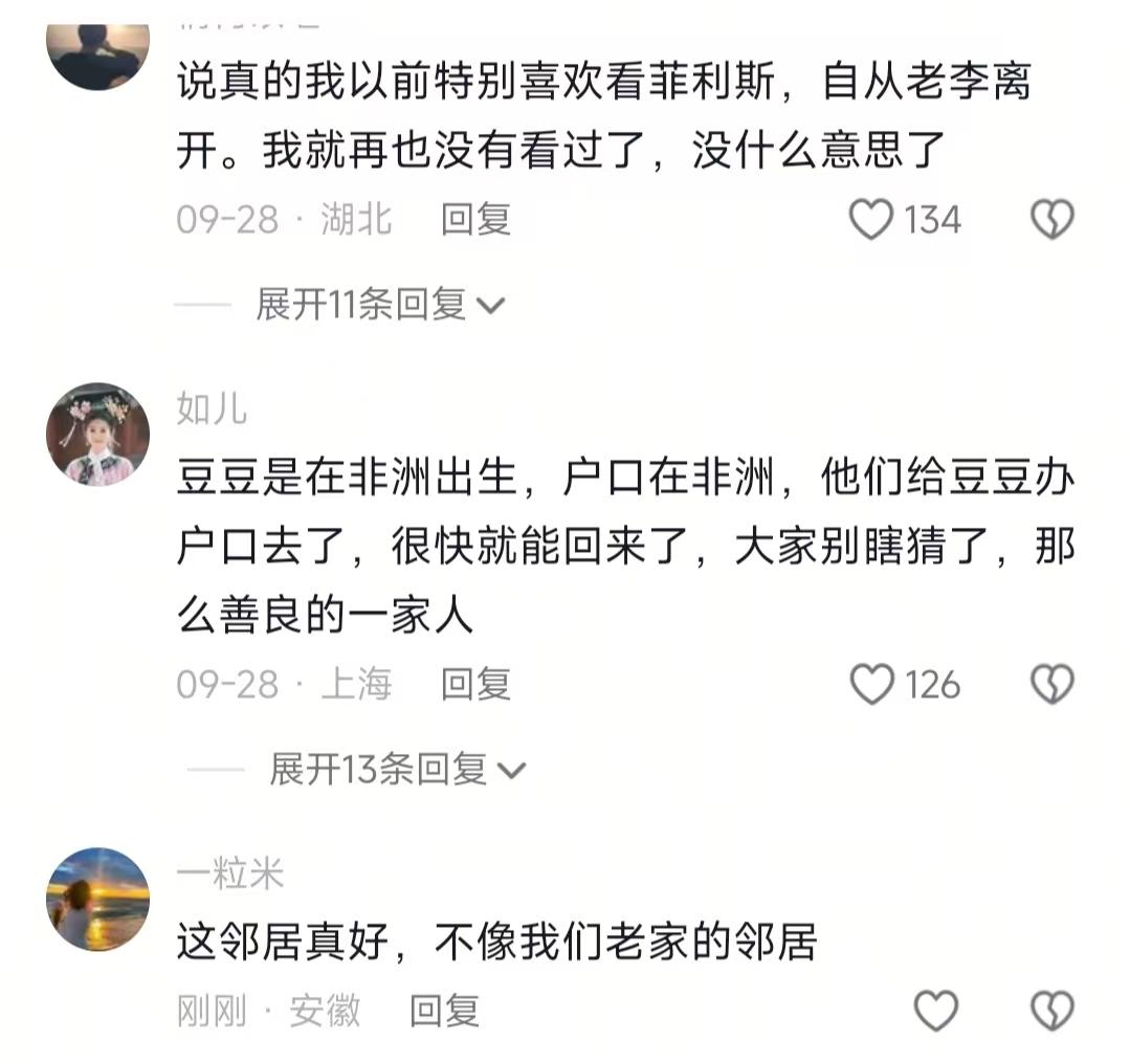 看到淇淇妈妈发的菲儿和淇淇跳舞视频,我忍了 看到前50条留言里,32条都在问“豆豆呢,我也忍了 可是看到有人翻出三个月前的视频,豆豆在有猴面包树的院子玩,我实在忍不住了 我晕,昨天刷到淇淇妈妈发的菲儿和淇淇跳舞视频,本来想跟着乐呵乐呵,结果点开评论区直接愣住——前50条留言里,32条都在问“豆豆呢”,比夸俩孩子跳得好的还多!视频就1分18秒,背景还是他家那套粉色沙发,摆着一堆儿童玩具,俩娃跟着儿歌晃胳膊踮脚,看着挺开心的,可就是没见豆豆身影。 说实话,我关注这家人快一年了,平时看他们晒娃觉得挺真实的,豆豆圆乎乎的特招人喜欢。淇淇妈妈3小时后回复了条高赞留言,居然是“三人跳的不好吗”,这不是明摆着回避嘛!之前直播里她还说“豆豆近期有出行安排”,肯定知道孩子在哪,可就是不正面说,你说这郁闷不郁闷?评论区有人说“看两年了跟邻居似的,问下咋了”,点赞破5000,我本来也觉得没啥,后来又看到有人怼“现实里你会追着邻居问‘你家娃今天去哪了’吗”,瞬间懵了——好像两边都有点理? 网友也是真能处,扒信息的本事嘎嘎给力!有人翻出三个月前的视频,豆豆在有猴面包树的院子玩,淇淇妈妈当时说“这是姥姥家”,现在猜豆豆还在非洲;还有人说回平利老家了,因为一个月前拍过摘柿子的陕南老房子。哎呀妈呀,这侦探精神杠杠的! 本来觉得大家就是瞎猜,结果越看越离谱——有人说“姥姥没露过正脸,是不是身体不好”,还有人晒偶遇照,说平利老家门口有个中年男的,怀疑是豆豆爸爸,我晕,不是吧?孩子去亲戚家不是很正常吗,咋还扯出阴谋论了?我妈之前跟我说“凡事别钻牛角尖,水到渠成最好”,本来觉得这话有点佛系,现在看评论区吵成这样,突然觉得有道理。可反过来想,为啥大家会猜?因为淇淇妈妈提姥姥只露过手,提老家没拍过其他亲戚,爸爸更是从没提过,信息碎得跟拼图少了几块似的,能不瞎猜吗? 后来我刷到个评论,瞬间清醒:“不是在乎豆豆在哪,是在乎‘为啥只藏他’”。有人说“就说句在姥姥家,又不用给地址,咋这么难”,有人说“开了头就收不住,去年有个博主说漏嘴娃的学校,粉丝直接堵校门口,想想都崩溃”。说实话,这俩说法我都懂——一边怕被扒隐私,一边觉得被糊弄,两边吵得稀里哗啦。 我之前关注过一个亲子博主,平时晒娃上早教、逛超市,结果有次说漏嘴娃的幼儿园,第二天就有粉丝堵门口要合影,吓得博主再也不敢提任何具体信息,说实话,这事儿想想就膈应。可反过来,要是淇淇妈妈大大方方说句“豆豆在亲戚家玩得挺好”,不就没这么多事了?半遮半掩的,比不说还让人闹心。 其实我觉得,要是淇淇妈妈团队能偶尔提一句“豆豆挺好的,在亲戚家小住”,不用多解释,大家也不会瞎猜了。毕竟没人真要扒隐私,就是看久了像朋友,图个安心。