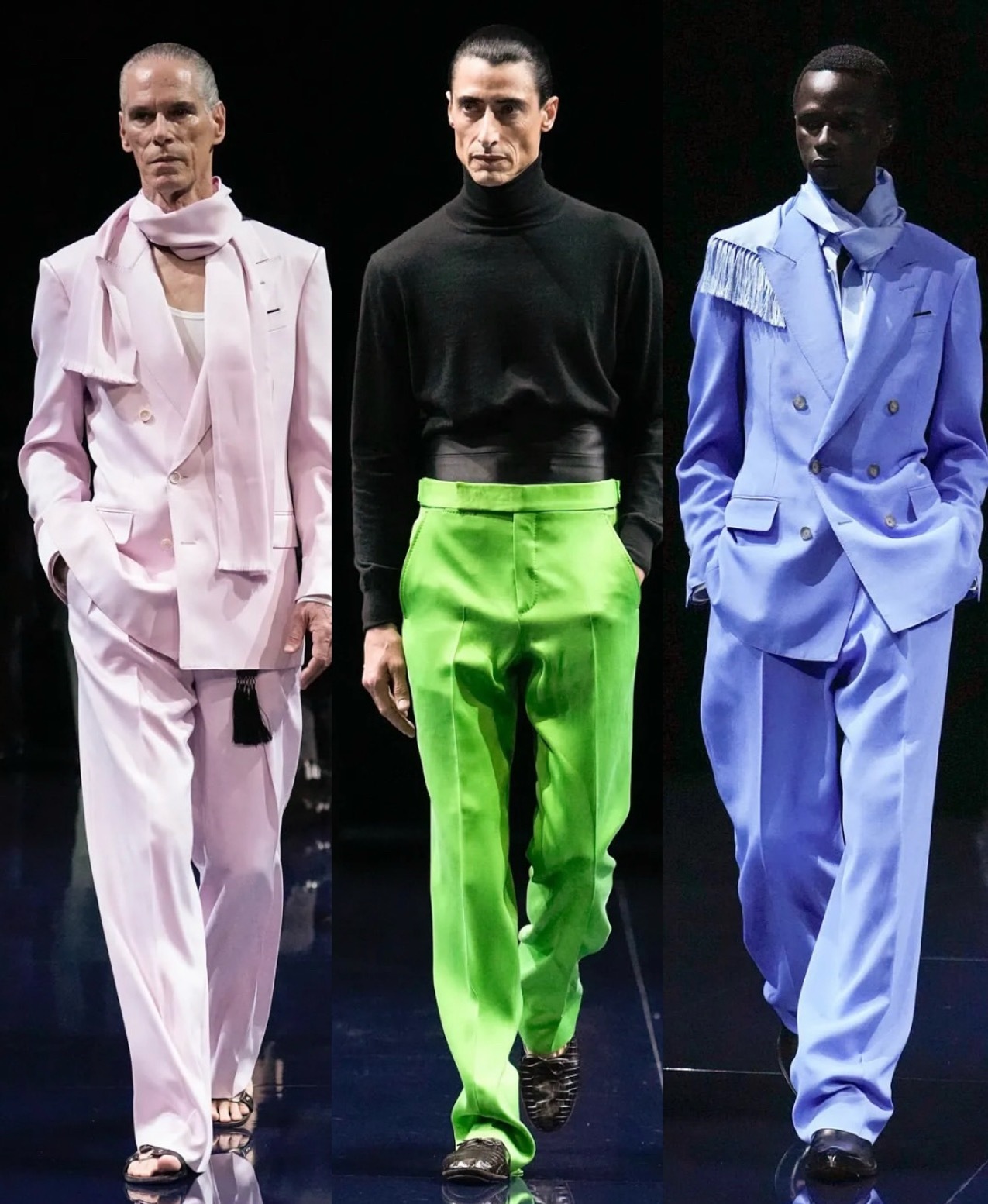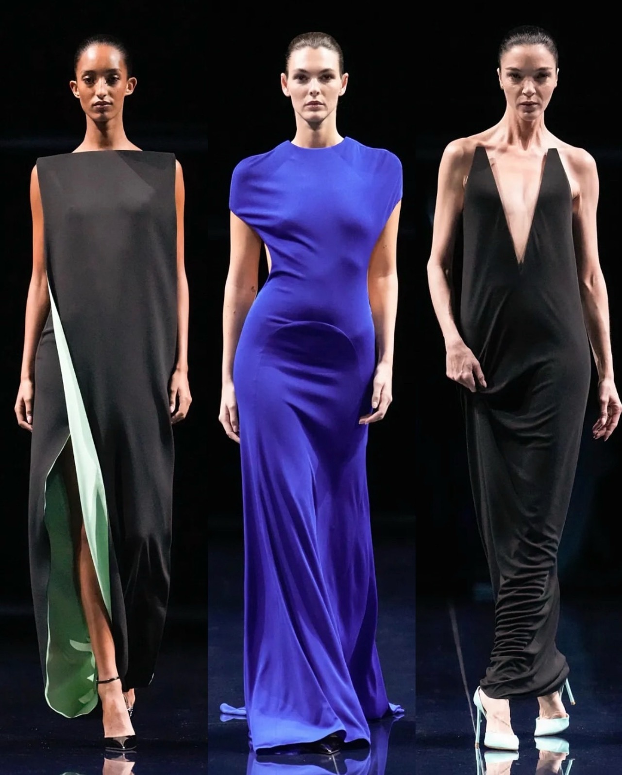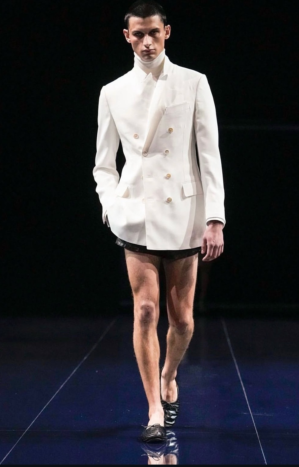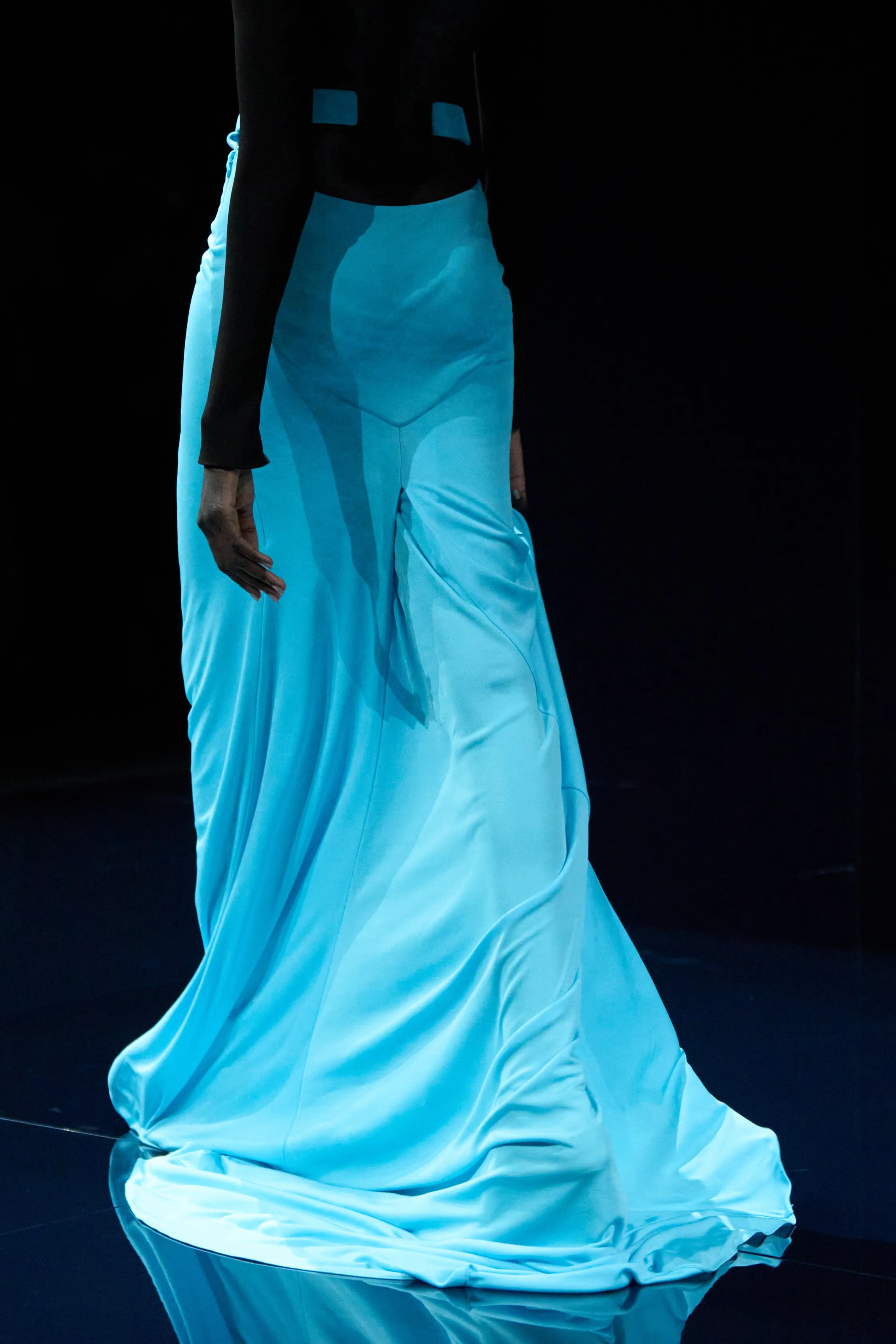 由创意总监 HAIDER ACKERMANN 打造的 TOMFORD2026春夏时装秀。本季秀场犹如午夜海洋。服饰延续了TOMFORD标志性的优雅,但融入了 Ackermann 独有的自由感:小巧三角上衣取代衬衫,男士透明短裤,金属线结构的晚装,打造出不对称且轻盈的身体轮廓。