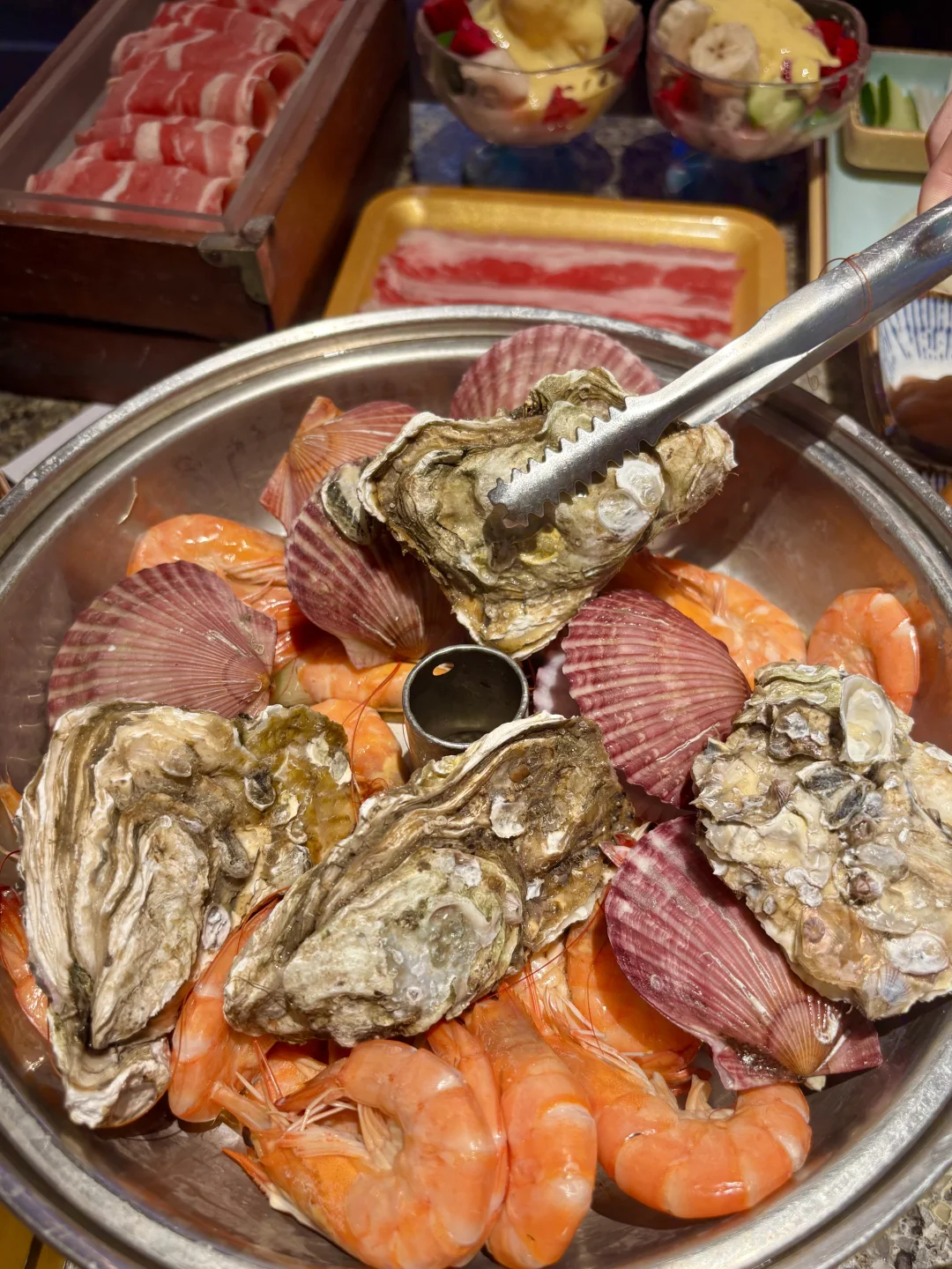 真的一进去就哐哐炫!! 直接实现海鲜自由了三文鱼、生蚝、基围虾、螃蟹、各种贝类 个头不仅大 还都是鲜活的…想吃多少捞多少… 都是无限量 已经吃了好多好多了 不知道该怎么形容这种幸福…