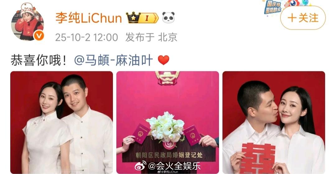 恭喜恭喜李纯马頔领证李纯马頔领证结婚