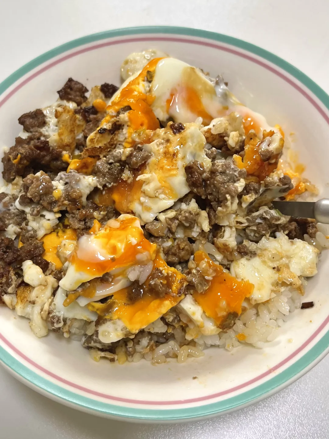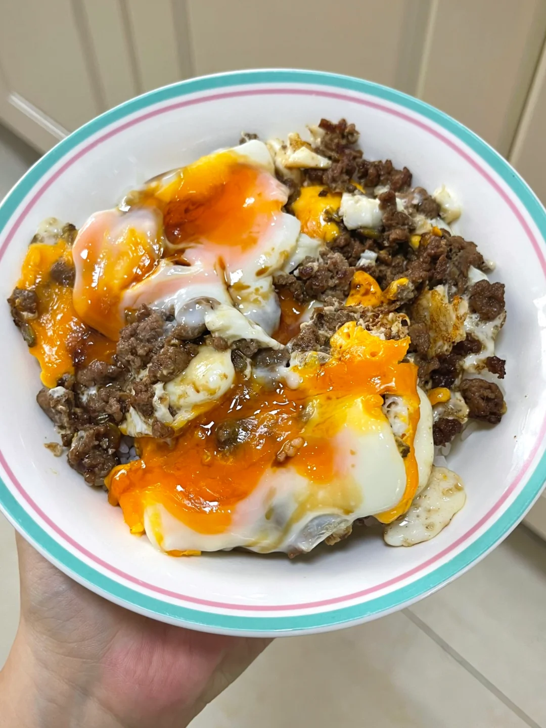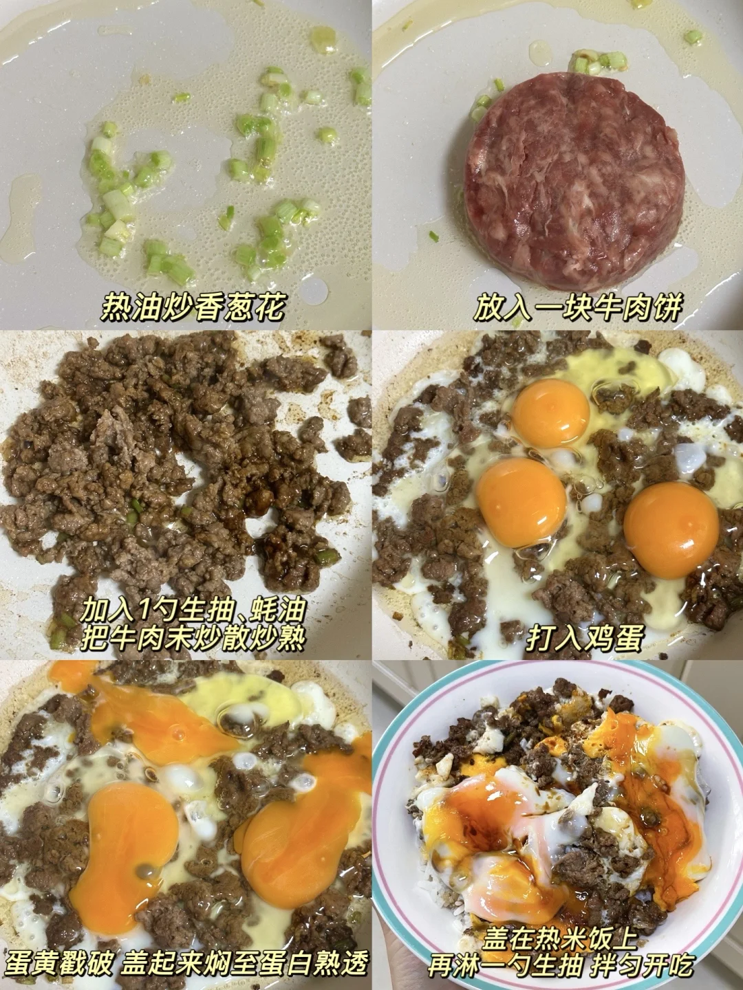 十分钟就可以搞定的牛肉溏心蛋拌饭 平时不知道吃什么的时候可以试试这个! 食材只需要牛肉末➕无菌蛋就好啦 焦香的牛肉末配上流心的溏心蛋 一口下去真的绝啦 大口吃饭的满足! 做法巨简单 详细步骤在图五~