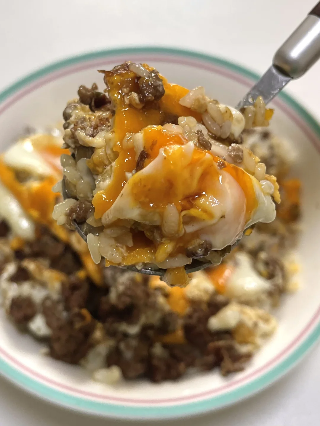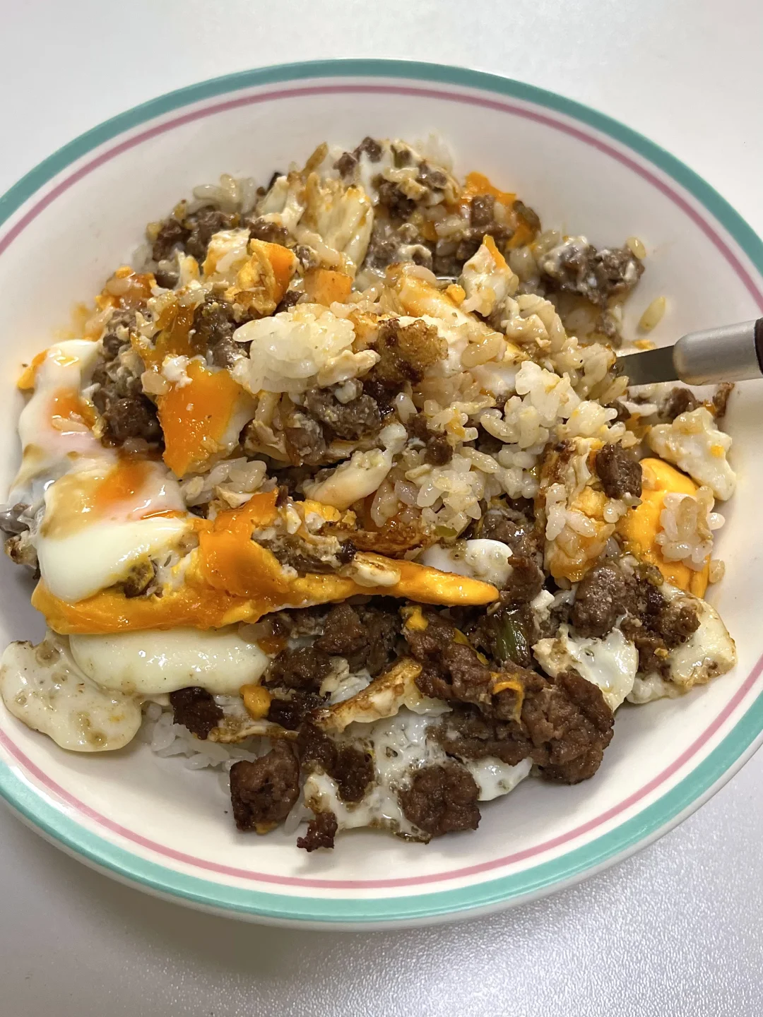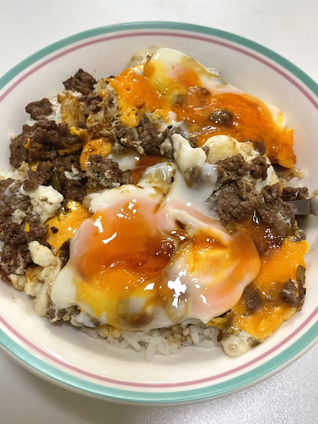 十分钟就可以搞定的牛肉溏心蛋拌饭 平时不知道吃什么的时候可以试试这个! 食材只需要牛肉末➕无菌蛋就好啦 焦香的牛肉末配上流心的溏心蛋 一口下去真的绝啦 大口吃饭的满足! 做法巨简单 详细步骤在图五~