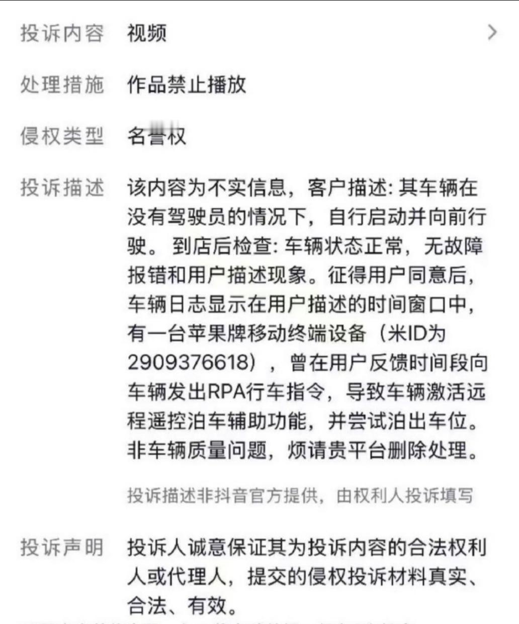 小米官方辟谣:“有一台苹果移动终端设备(米ID为29****6618),曾在用户反馈时间段向车辆发出RPA行车指令,车辆激活远程遥控泊车辅助功能,并尝试泊出车位。”