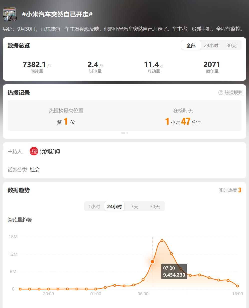 小米汽车突然自己开走 真就趁着国庆假期上强度,凌晨六七点钟冲上热搜 ?