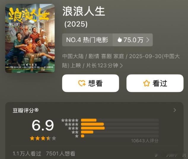 《浪浪人生》聚焦闽南海滨小镇的小人物,通过家人“疯”力全开相互托举的日常,展现以“疯”解构矛盾、以“浪”破局重生的生活哲学。该片虽然不是韩寒编剧导演,但由他监制,其实还有他导演的公路片的风格,有沉浸的主题和故事,也有轻喜剧的风格形式。国庆刷到宝