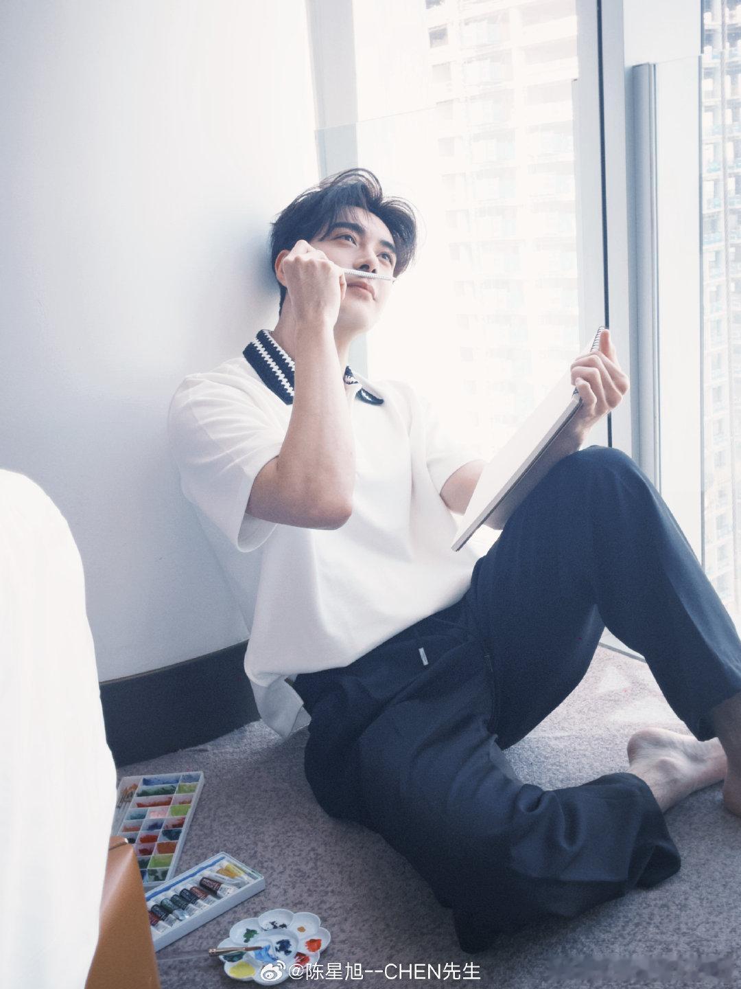 国庆第二天陈星旭化身小画家!选择宅在家[奶牛猫][奶牛猫]