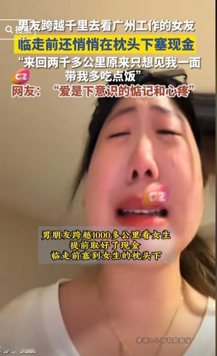 破防了!广州,女生和男友温存后,依依不舍送别男友,回家后竟然枕头下看到一沓现金,她瞬间就明白了,这是男友怕自己不要,偷偷给自己留下的,原来2人是异地恋,男友在武汉,2人相距1000多公里,只是为了让她吃好一点,女生一下就崩溃大哭。 事情的起因是小苏(化名)毕业之后就选择留在了广东打工,与男友过了异地恋的生活。在广东她一个月的工资也并不多,于是就租了一间很小很小的房子。 每天她一下班就回到自己的小出租房里面,一般情况下晚餐就是看什么做起来方便就做什么。由于经常不能与男友见面,所以他们二人就经常会在晚上打视频聊天。 然而就在前几天的时候,小苏的男友突然给她发消息让她往楼下看,当小苏看到男友在楼下的时候立马就飞奔了下去,两人紧紧的相拥在了一起。 随后两人回屋之后,男友就给小苏做了一顿丰盛的晚餐,吃完饭之后男友一刻也没有清闲,开始帮忙大扫除了一下,将原本就不怎么大的物资整理的井井有条。 待了几天之后,男友因为工作上的事情就走了,小苏在车站看着男友远离的背影,很是伤心。 然而就在小苏回到家里面在整理床铺的时候,突然在枕头底下摸到一沓用橡皮筋捆好的现金,这些钱是男友走之前给她偷偷留下的。 男友知道如果给小苏转账的话肯定又是不愿意收,所以就悄悄的取了一点现金放在家里面,这样的话等小苏发现的时候,已经没办法在拒绝了。 异地恋最大的难处,是看不见对方的日常,男孩平时只能靠消息确认她的状态,但这次见面,他发现小苏明显瘦了,所以就留下一些现金,让她吃饭用。 人走了,但心意还在,这并不是简单的给钱,而是他在距离面前做出的努力。 很多网友看了这个视频之后纷纷在下面评论说,他们两个人真的很般配,女儿知书达理知道男友挣钱不容易,男孩又能体谅女友一个人的孤单。 那么这个故事之所以能够让人感动,不在于钱的多少,而在于它展现了感情真正的核,真正的在乎,是能看到对方没说出口的需求,并用最合适的方式帮她解决。 真正的体贴不是强行给,而是懂得避开对方的敏感,让她能心安理得地接受。对此,你还有什么想说的吗? (信息来源 :广州ing 2025-09-29)