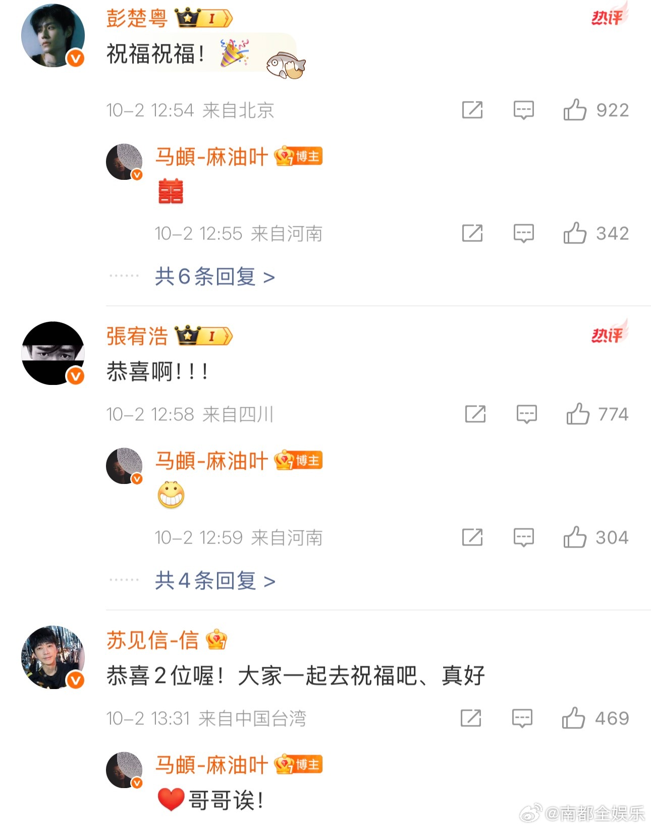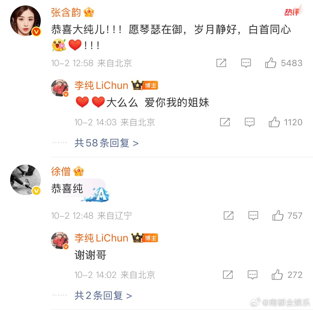 李纯马頔结婚马頔李纯孩子可以叫马思纯今日,与晒出红底合照,官宣结婚,两人可爱喊话对方:“恭喜你哦[心]!”太甜啦[打call]!评论区秒变大型“团建”现场,王菊、隔壁老樊、曾比特、张含韵、彭楚粤、张宥浩、苏见信等人都在前排送上祝福[太开心]! ​​​
