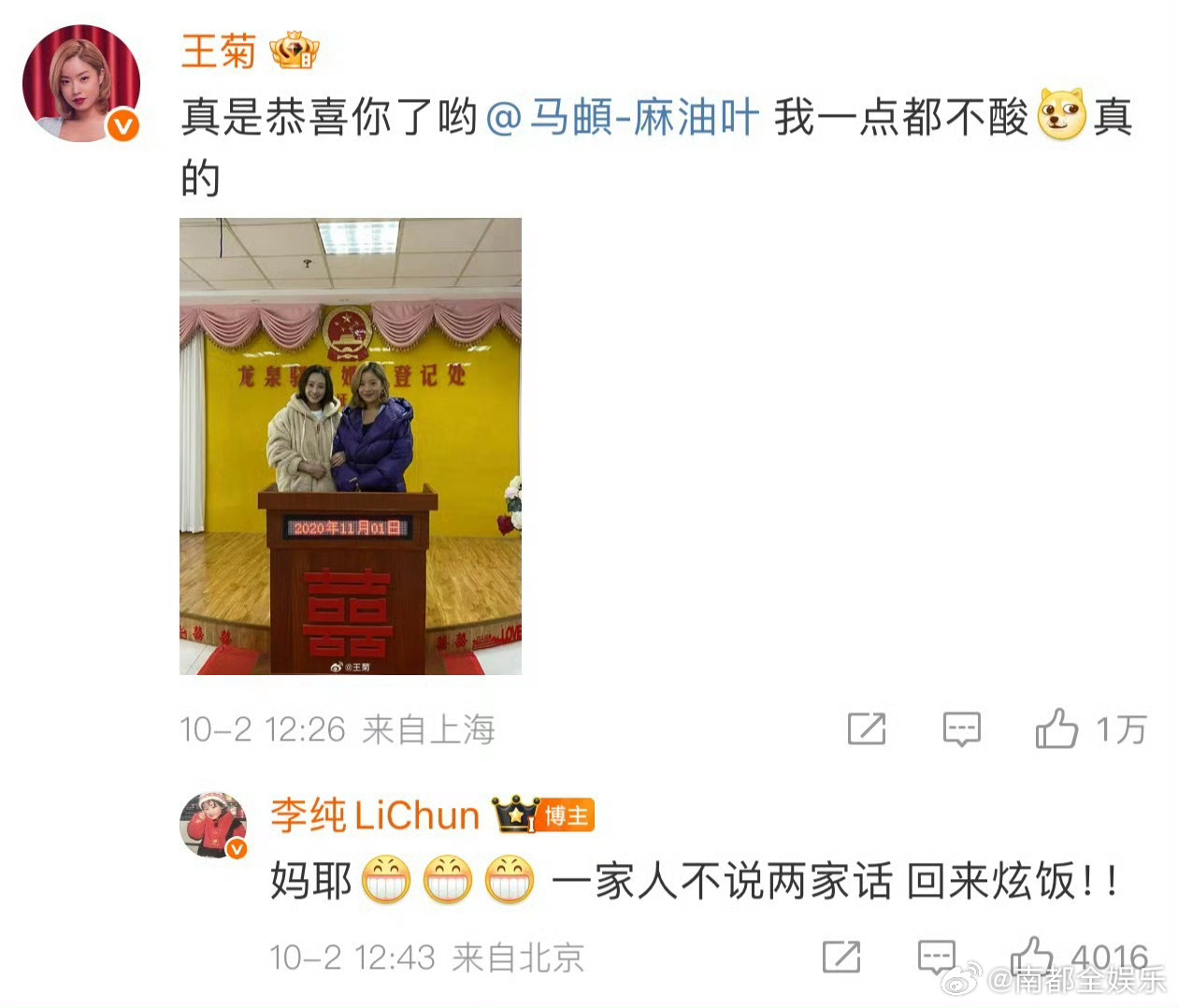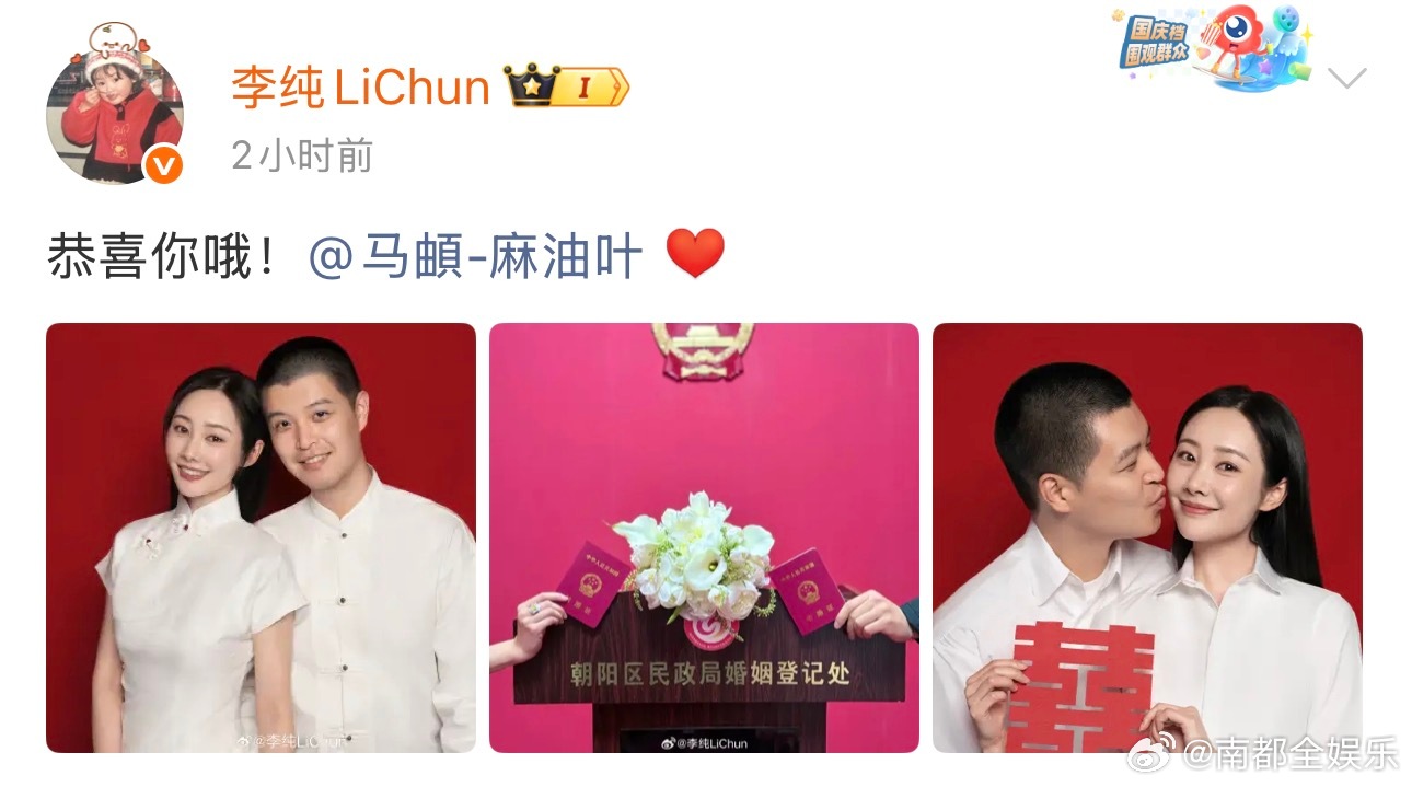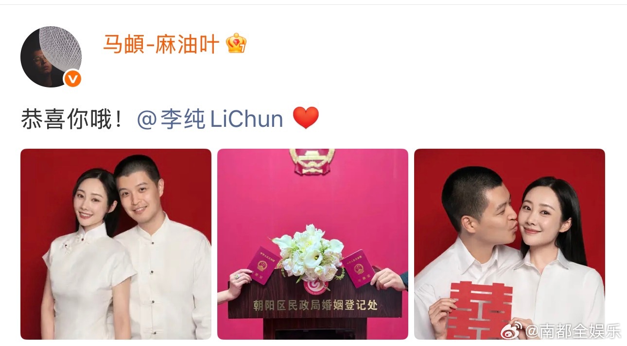 李纯马頔结婚马頔李纯孩子可以叫马思纯今日,与晒出红底合照,官宣结婚,两人可爱喊话