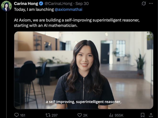 近日,CarinaHong在X平台上发布了Axiom的宣传视频,称「我们正在打造一个能够自我改进的超级智能推理系统,起点是一个AI数学家。」