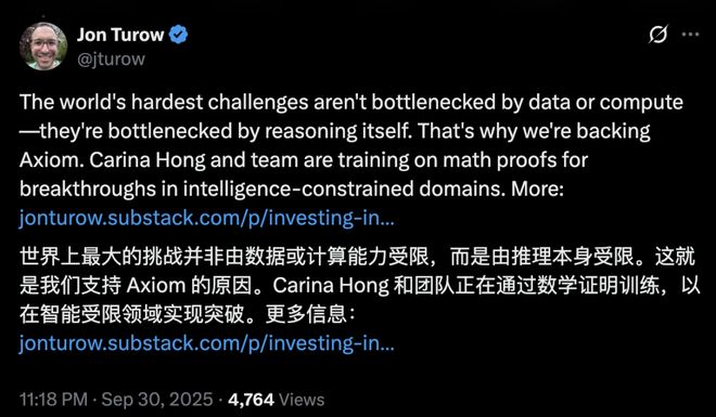 Charton认为,Axiom是一家真正认真对待数学AI的公司,而不是把它当成副业,这点对他来说非常重要。