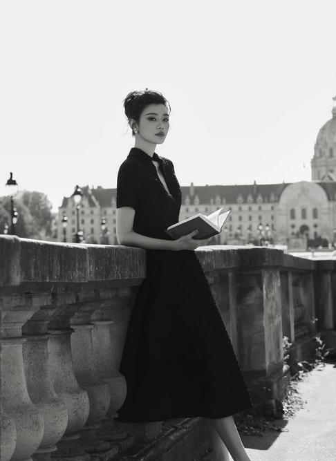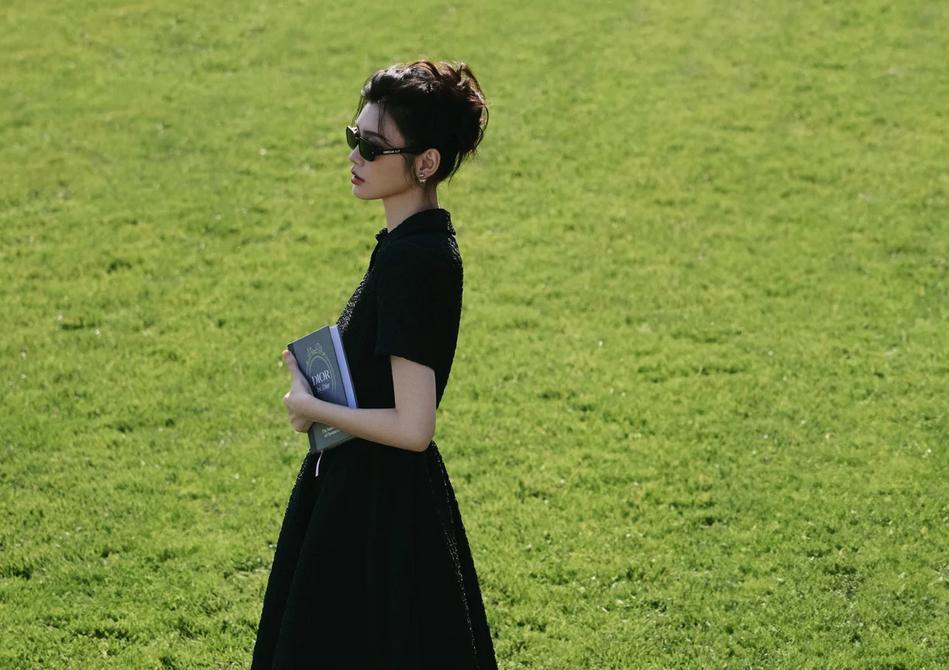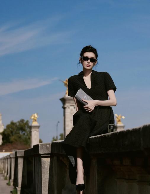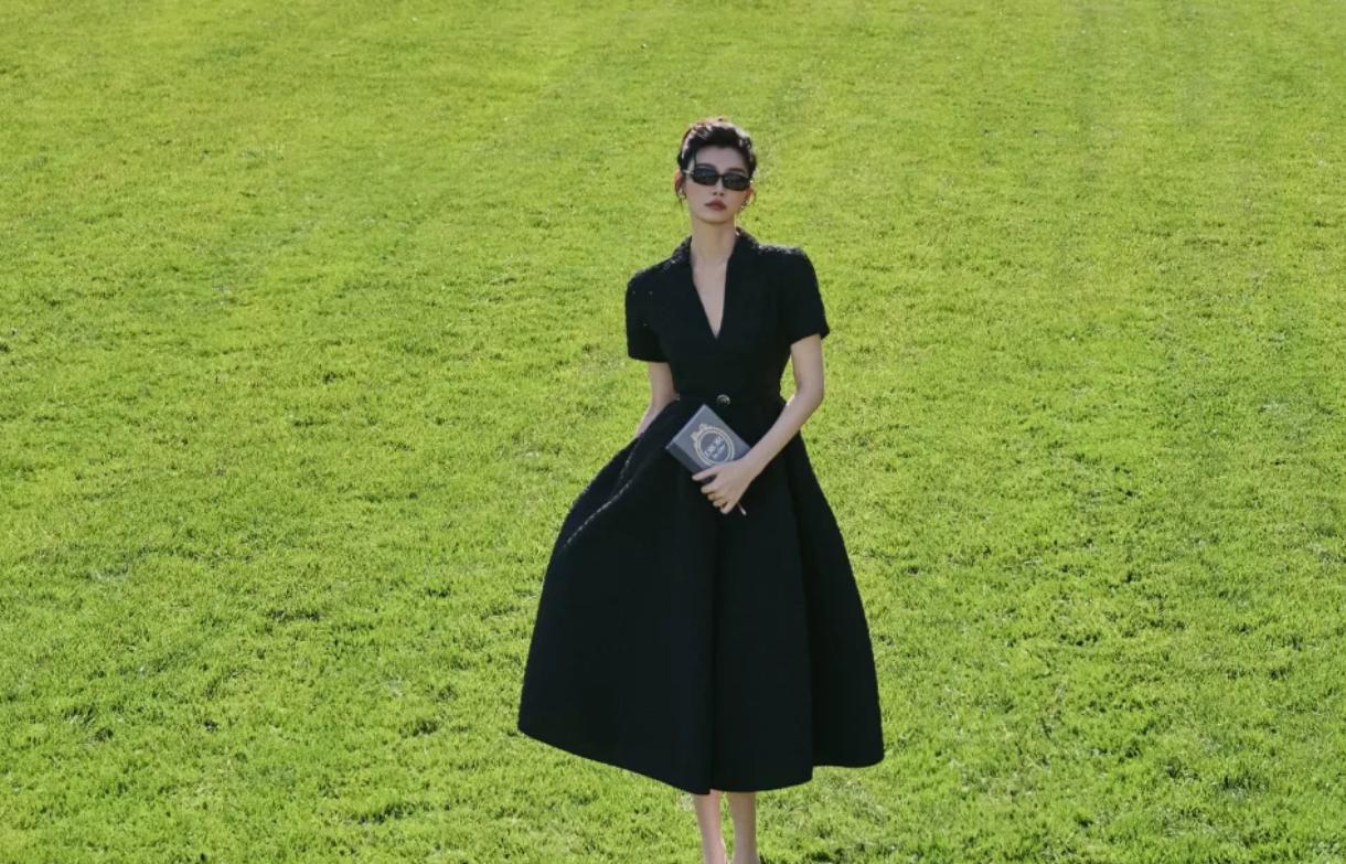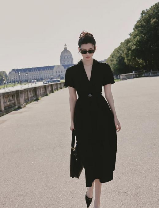 奚梦瑶晒新照片,黑色短袖束腰连衣裙搭配墨镜,既时尚又优雅