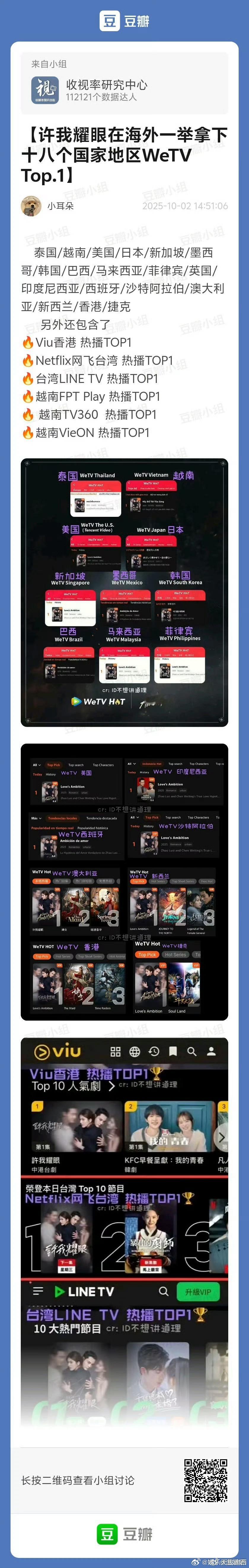 助力《许我耀眼》一举在海外拿下18个国家Wetv Top1[加油]