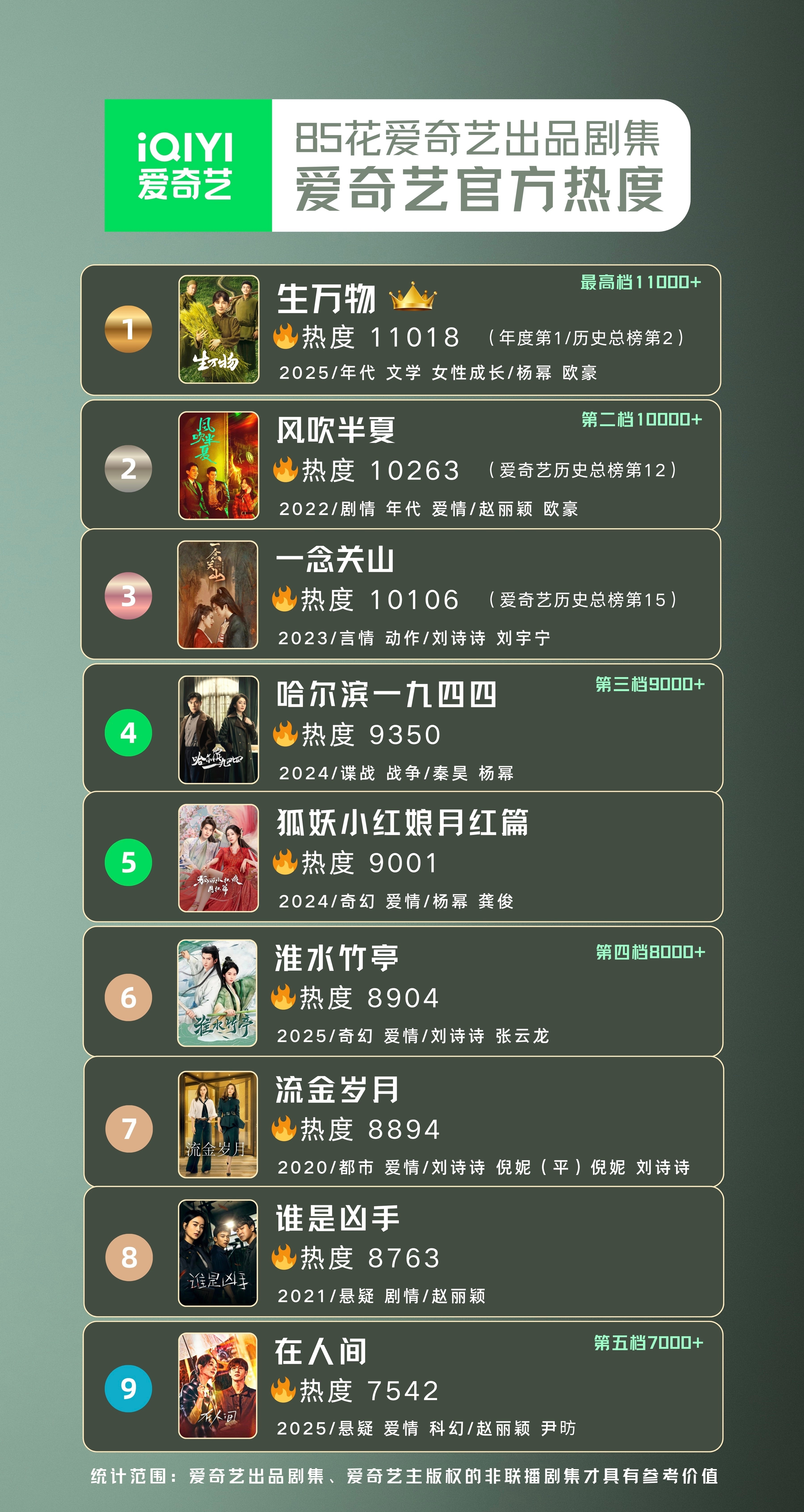 内娱26位女明星主演热度破万剧集阿喂,破万和破一万一还是不太一样,爱奇艺热度破