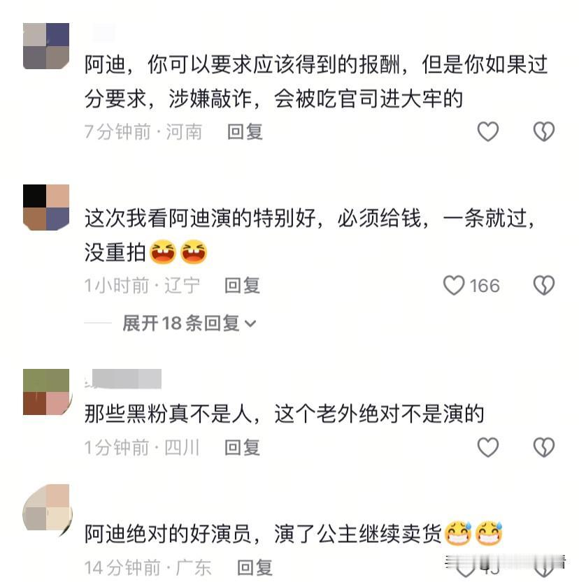 阿迪开车去上海,在小区门口堵盈公主和孩子,看到盈公主带孩子回来,问他为什么不接他的电话。 抢过盈公主身上的包,把包扔到地上,从里面拿出一个小本本,嘴里一直问:付不付钱?然后一把抱过凯莉。 盈公主一个劲说让他别吓着孩子,盈公主的儿子也在后面喊他:爸爸你们别吵架了,我害怕。阿迪抱着凯莉在前面说,别害怕。 看着阿迪抱着孩子要走,盈公主立马答应给钱,问他要多少?阿迪把孩子给盈公主,视频中断。 评论区有两种声音,有人说这是剧本,他是个好演员。也有人说,他这个样看起来不像演的。还有网友不知道到底是真是假,难以分辨。 盈公主在直播间也说过,她这些都是真实的,她有好几个摄影师,天天跟着拍,她本来就是做视频的,每天记录也正常。不过现在确实有点迷茫了!