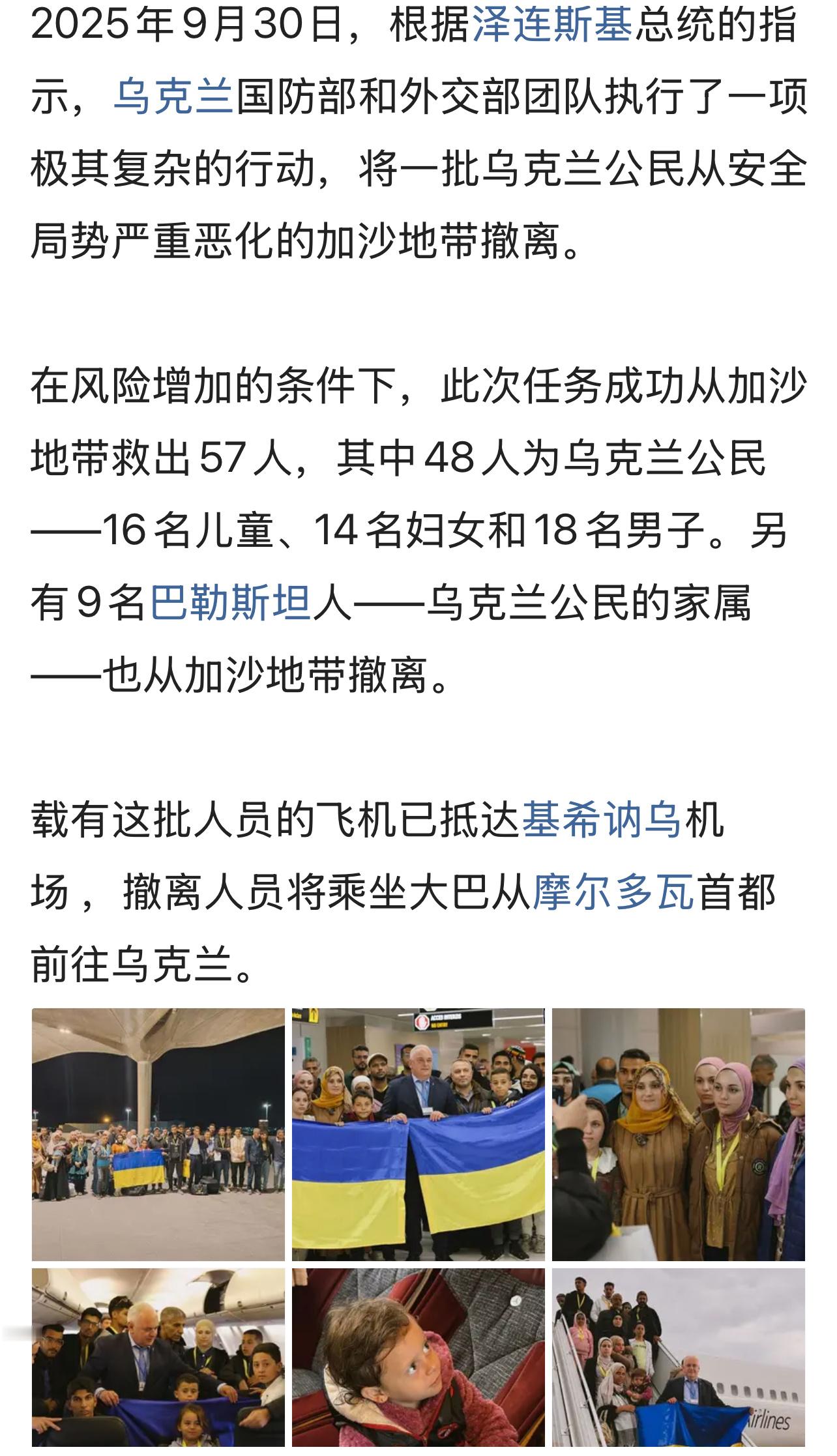 乌克兰国防部和外交部从加沙地带撤离57人加沙俄乌战争
