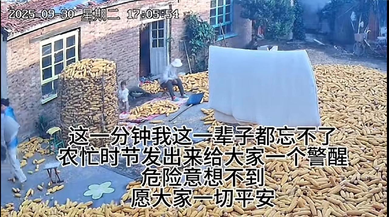 9月30日,山东德州。一农户玉米丰收了,堆得满院子都是。大人们都在忙着归拢玉米。 院子里用网围成了一个圈,一男子用铲子将玉米棒子放到网里面囤起来,已经有一人多高。 一个孩子独自在玩,好奇的到了囤玉米棒子的旁边。不巧的是,玉米堆偏偏在这个时候塌了,将孩子埋在里面。 孩子的妈妈就在不远处,转眼间孩子就被埋了,急得大喊快救孩子。家人们七手八脚的把孩子从玉米堆里扒了出来。妈妈抱着孩子半天回不过神来。 幸好及时发现,家人们抢救得快,孩子安然无事。 事后妈妈表示,就这一分钟一辈子都忘不了。她提醒大家,农忙时节也不能忘记危险的存在。 孩子被垮塌的玉米堆掩埋 万幸没事孩子成长