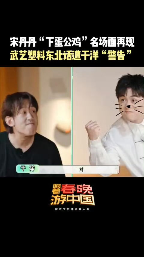 武艺被于洋单方面禁止说东北话跟着春晚游中国 武艺于洋整活天花板!复刻宋丹丹“下蛋公鸡”名场面,塑料东北话遭拿捏,一个敢教一个敢学~