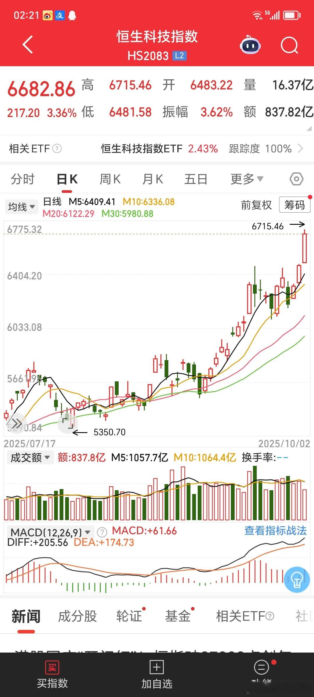 港股今天开盘疯了,涨势如虹,最高1.6%多,再创阶段新高!港股科技指数更是3.8%多。