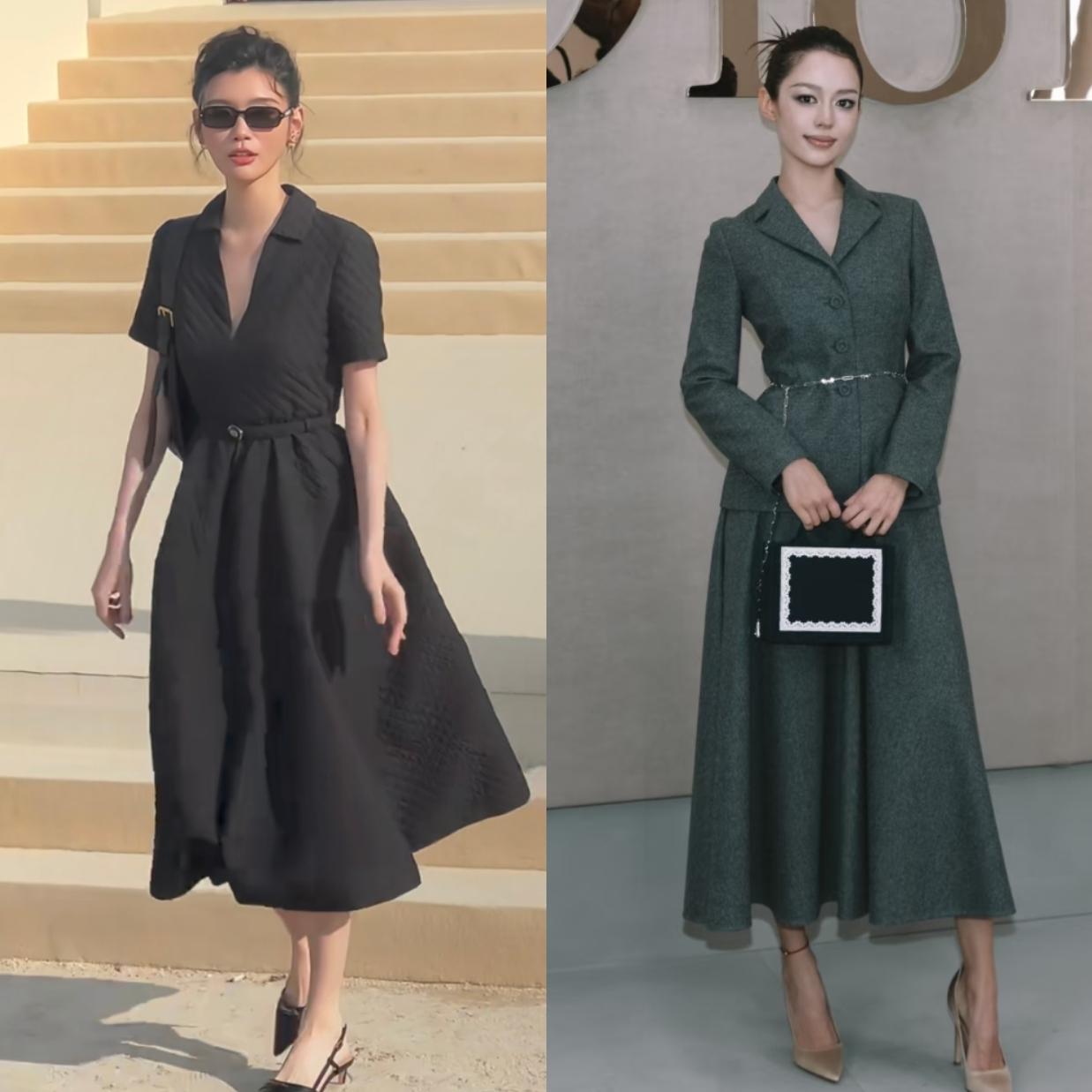 奚梦瑶现身Dior秀场,她穿了经典newlook小黑裙,但效果很一般,她搭配尖头鞋、黑包,还把头发都盘了起来,能看出她有在精心装扮,但结果却是用力过猛,典雅贵妇造型没凹出来,反而看着很古板老气,穿得像40多岁了。 奚梦瑶跟Dior风格天然对斥,她本人是偏冷淡的中性风,更适合灰蒙蒙的极简风,或抽象线性的未来风,而Dior的衣装是典雅、甜美、华丽的,更适合长相浓郁、甜美的人穿,像代言人热巴跟以前的Dior大使杨颖。 类似的衣装,奚梦瑶穿得甚至不如非模特出身的吉娜好看,吉娜这种长相就很适配Dior了。