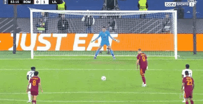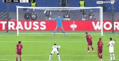 足以载入欧洲足球史册的一场比赛——欧联杯罗马主场0:1里尔! 这场比赛本身没有什么特别的,在临近比赛结束时,久攻不下的罗马得到一个点球的机会。而这个点球主罚的过程足以载入欧洲足球史册! 其实这个点球的获得就有点事问题,进攻方的罗马球员停球的时候就有球打在手上的嫌疑,然后就是里尔球员将球破坏出底线。罗马获得角球,里尔球员抗议无效。而罗马的角球发入禁区,里尔球员手球了,主裁判在VAR的提醒下判了点球。 高潮来了,多夫比克罚出的点球被里尔守门员范泽尔扑出来,跟上的里尔球员破坏出底线。注意,是里尔跟上的球员破坏出底线。 这时,助理裁判提醒主裁判里尔守门员提前移动了。主裁判判定点球重罚!多夫比克这次用同样的动作,射向同样的角度;里尔的守门员也用同样的动作再次将球扑出!只是这次球直接扑出了底线!我、包括爱奇艺的那个解说员一时间有点儿恍惚,这是第二次罚点球还是上次点球还是的重放?仔细观察后发现,唯一的不同就是第二次罚的点球是直接被守门员扑出底线,没有防守球员上来破坏! 结果,主裁判再次判重罚!这次在重压之下,罗马主罚点球手换人了,改由苏莱主罚。结果苏莱也很实在,只是换了射门方向,踢向守门员的右手方向,其他的技术动作和射门角度与多夫比克完全一样!结果又被范泽尔扑出来了!也是提前移动了,但是这次裁判也烦了,没再给罗马机会重罚! 怎么样?在足球历史的长河里没有过吧?一个点球被人家扑出来三次!