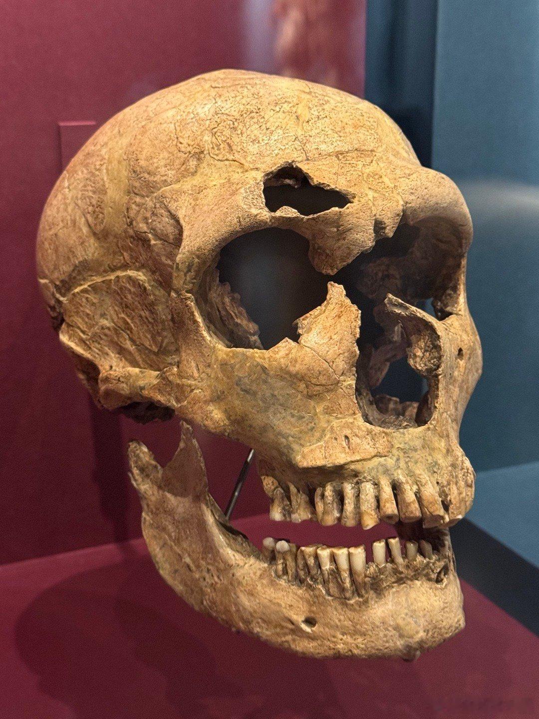 1费拉西一号尼安德特人头骨,4.5-4.3万年前,法国国家自然历史博物馆藏。见于东京国立科学博物馆“冰河时代”特展。
