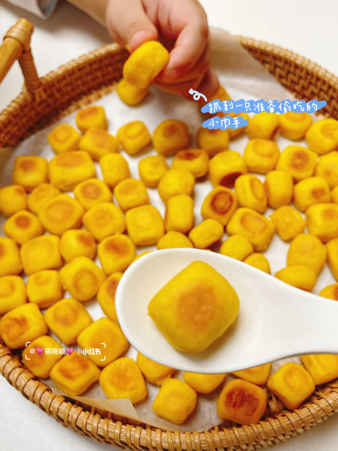 不用烤箱也能做的奶香南瓜小面包,奶香浓郁,超级好吃,无油无水噢~一口一个好吃到停不下来,大人小孩都爱[害羞R]