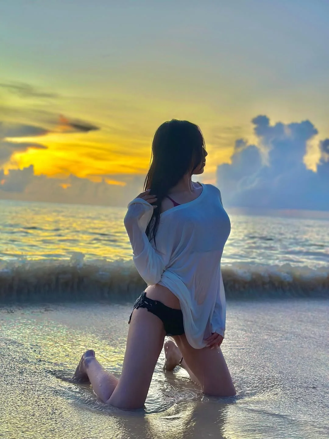 TVB港姐冠军冯盈盈晒海边照,身材真好