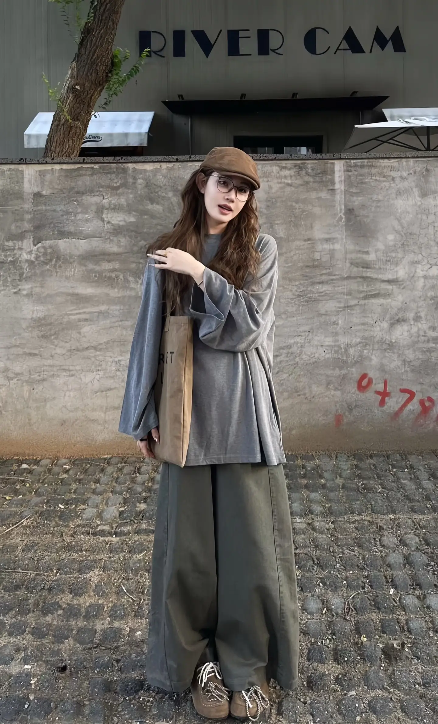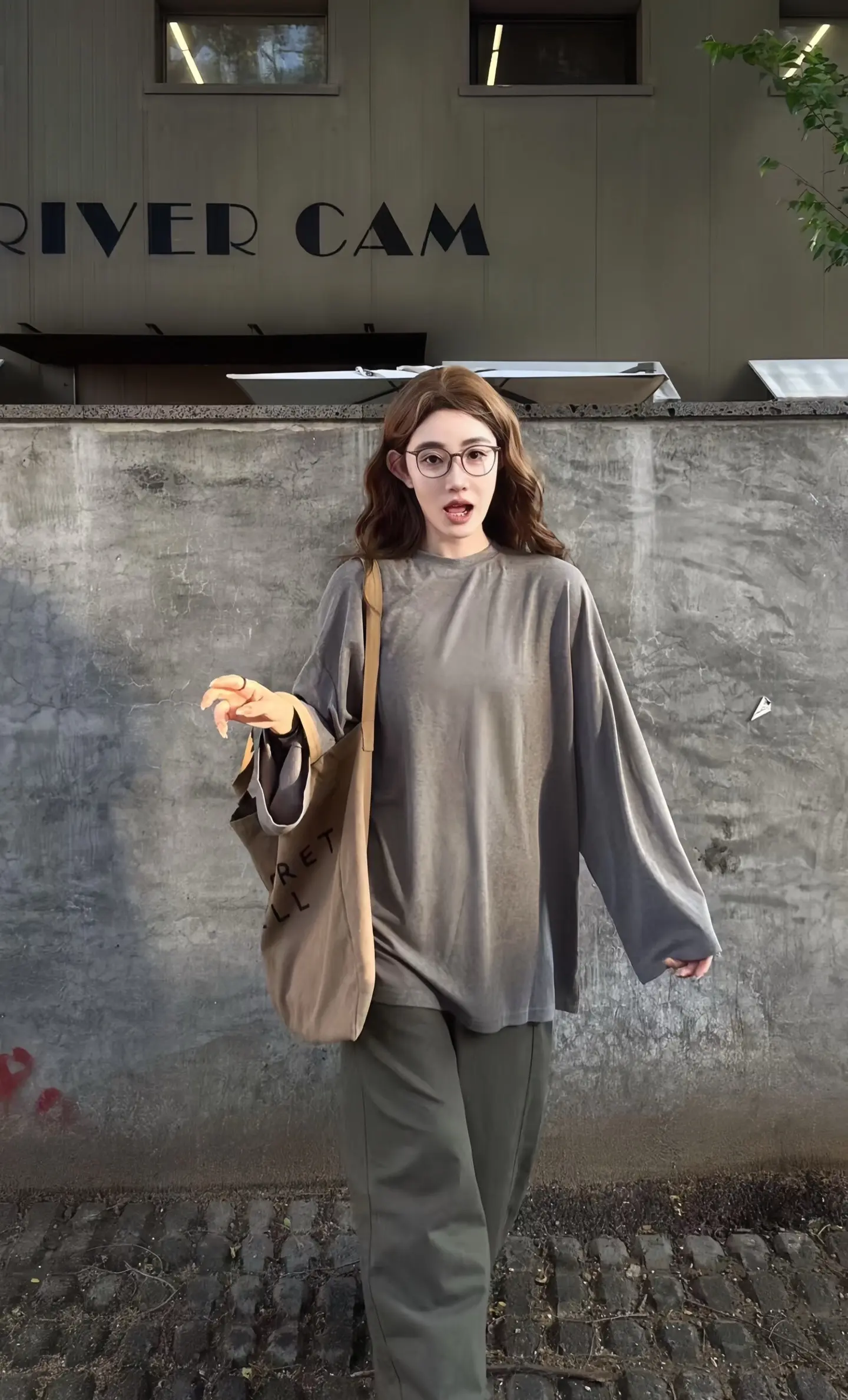 戚薇驼色粗针织开衫搭配,慵懒风穿搭的时尚教科书
