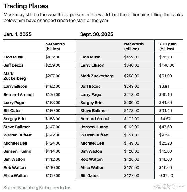 今年前三季度,全球亿万富豪榜单随着美国国内政治变动、国际冲突与人工智能的快速发展而剧烈洗牌。