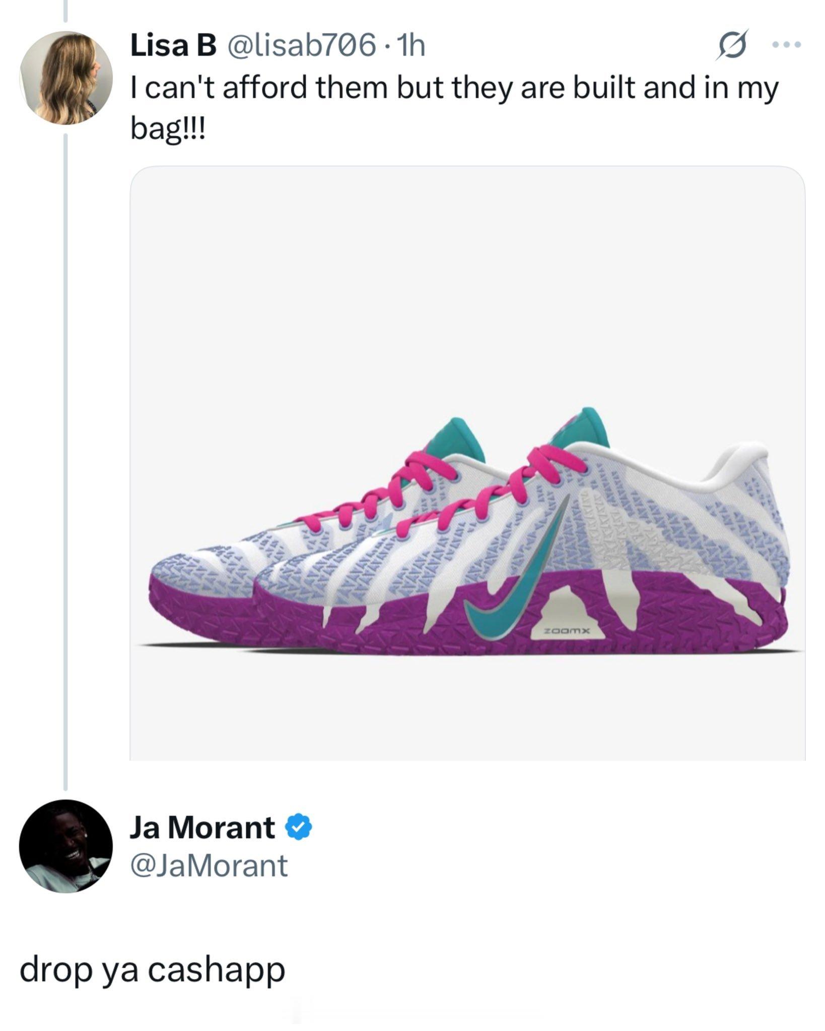 真优质偶像!莫兰特为粉丝自己定制的Nike By You Ja 3s 买单!❤️ 莫兰特莫兰特三代孟菲斯灰熊