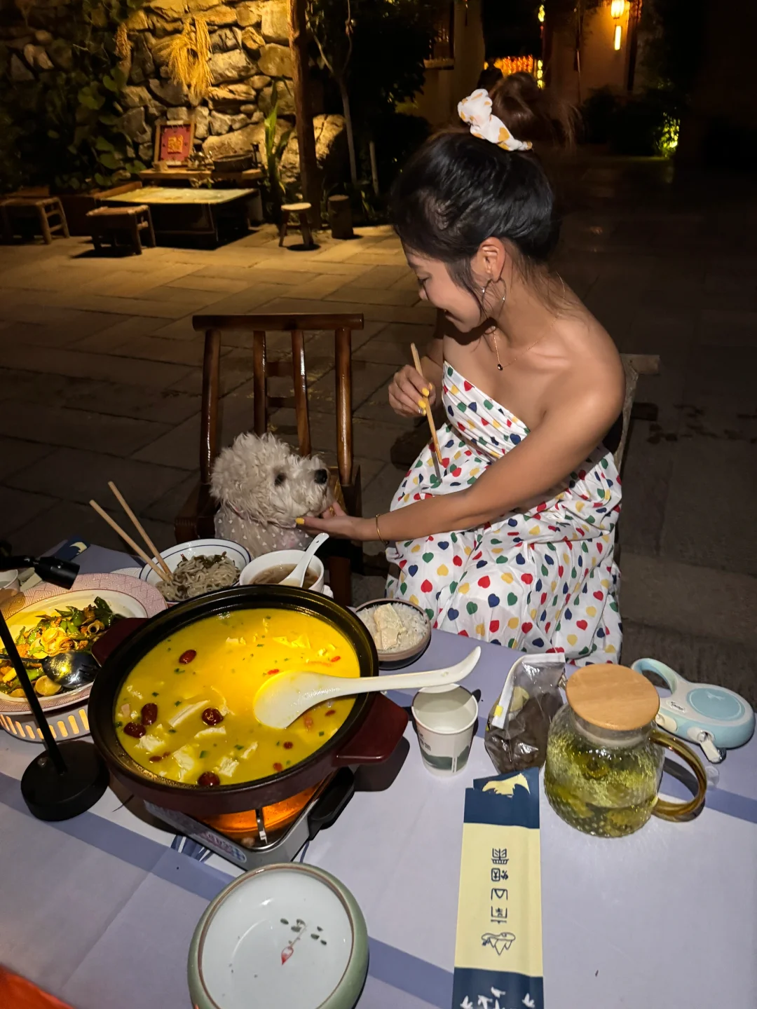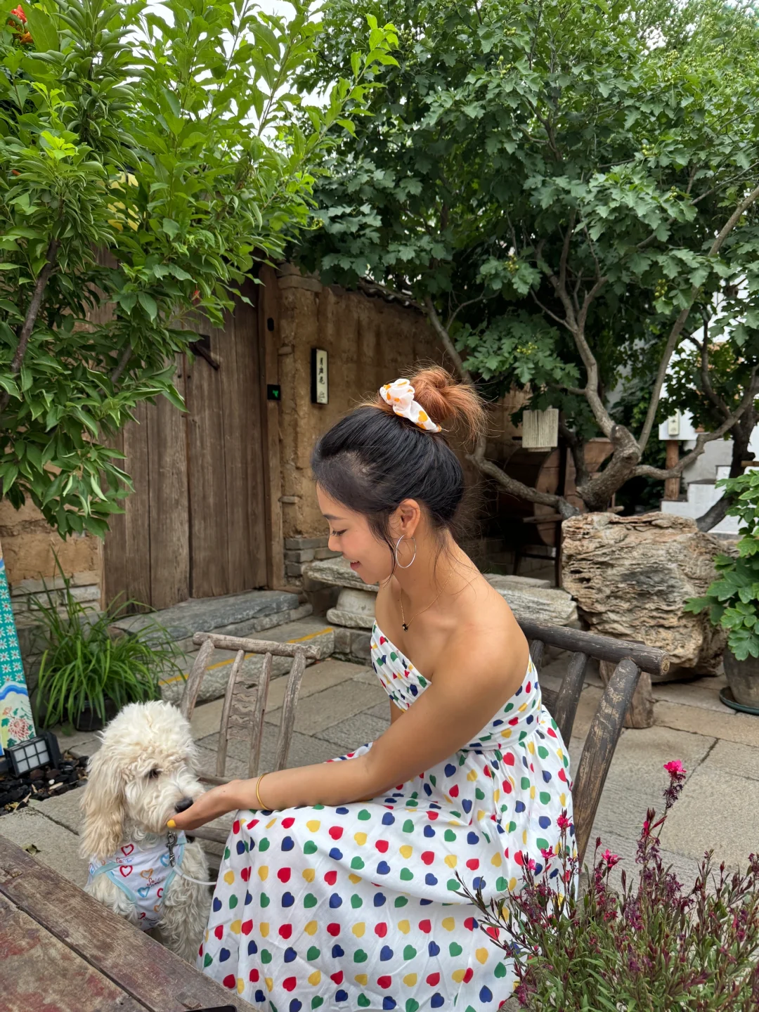 周末带狗子享受安静时光 大床对着树景 晚上坐在小院子里吹着晚饭 好快乐啊!