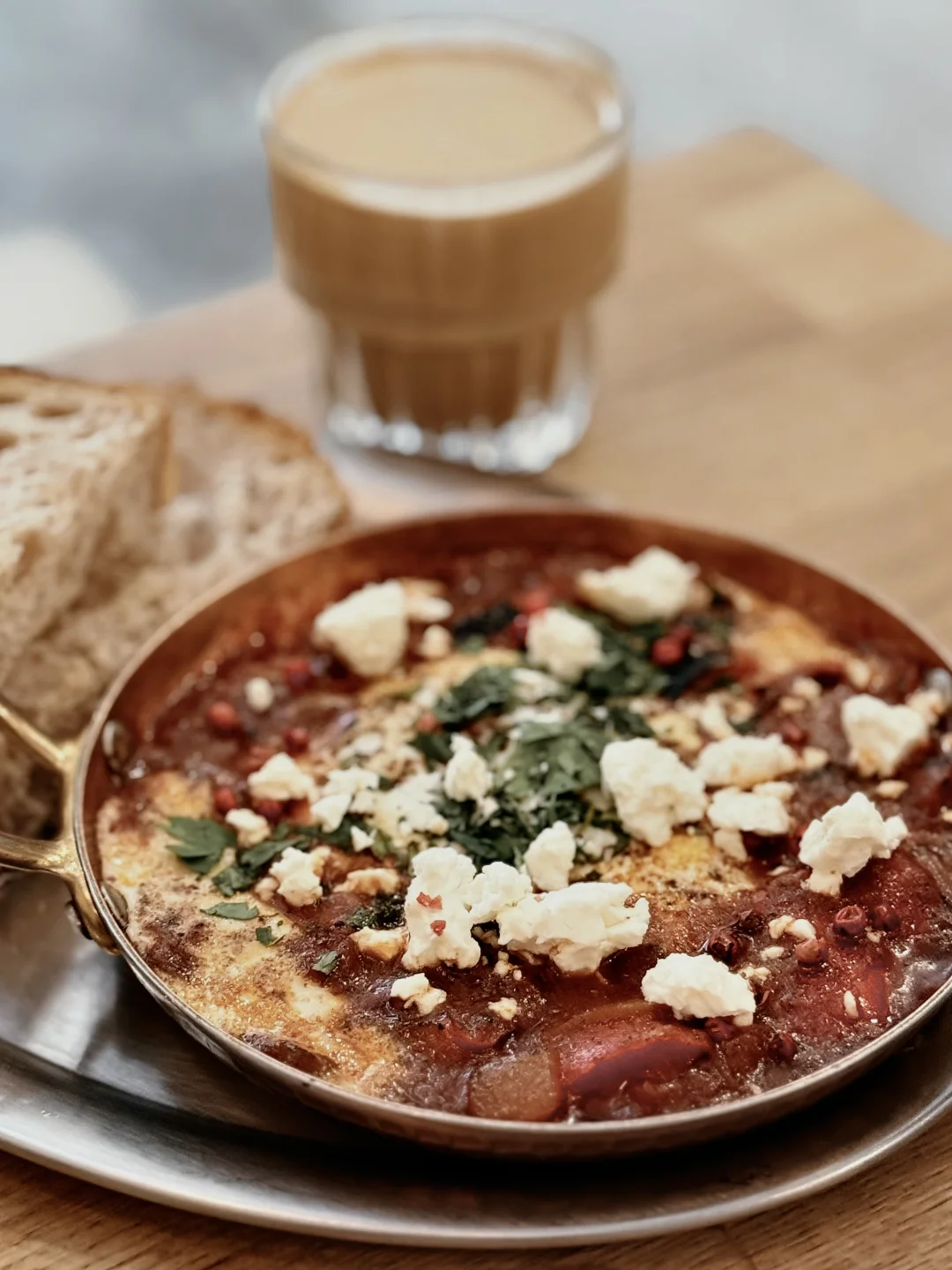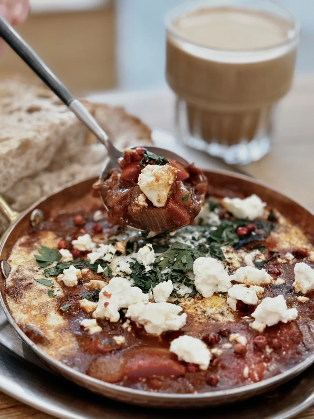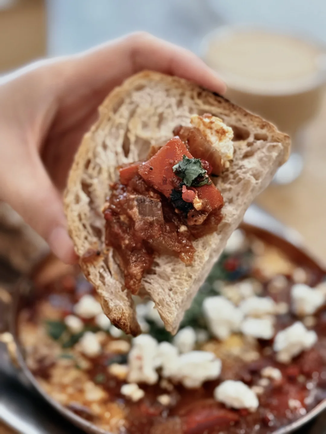 🔥北非香料Shakshuka配酸种面包,铁锅端上滋滋作响,北非风情混搭港式街景,正!