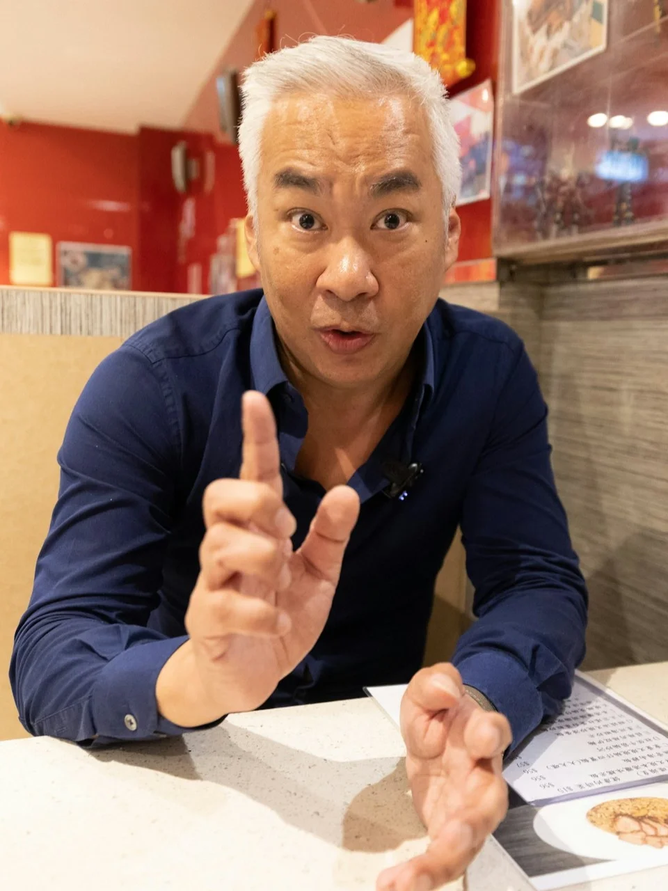 被問到是否聘請戴耀明做侍應,他說:「其實因為我同佢拍劇結緣,有陣時佢就話想生活體驗,佢想試吓做樓面嘅感覺,我話當然冇問題。」至於最初得知戴耀明答應工作時,是否認為對方只是開玩笑,他表示:「開頭我都以為佢玩玩吓,不過呢佢做嘢都好認真。(戴耀明什麼時候開始正式上班?)睇吓幾時得閒啦!佢如果要返工都會早一日同我講,開頭就叫佢晏晝過嚟幫手,嗰陣時冇咁多食客,始終都驚整親佢。」