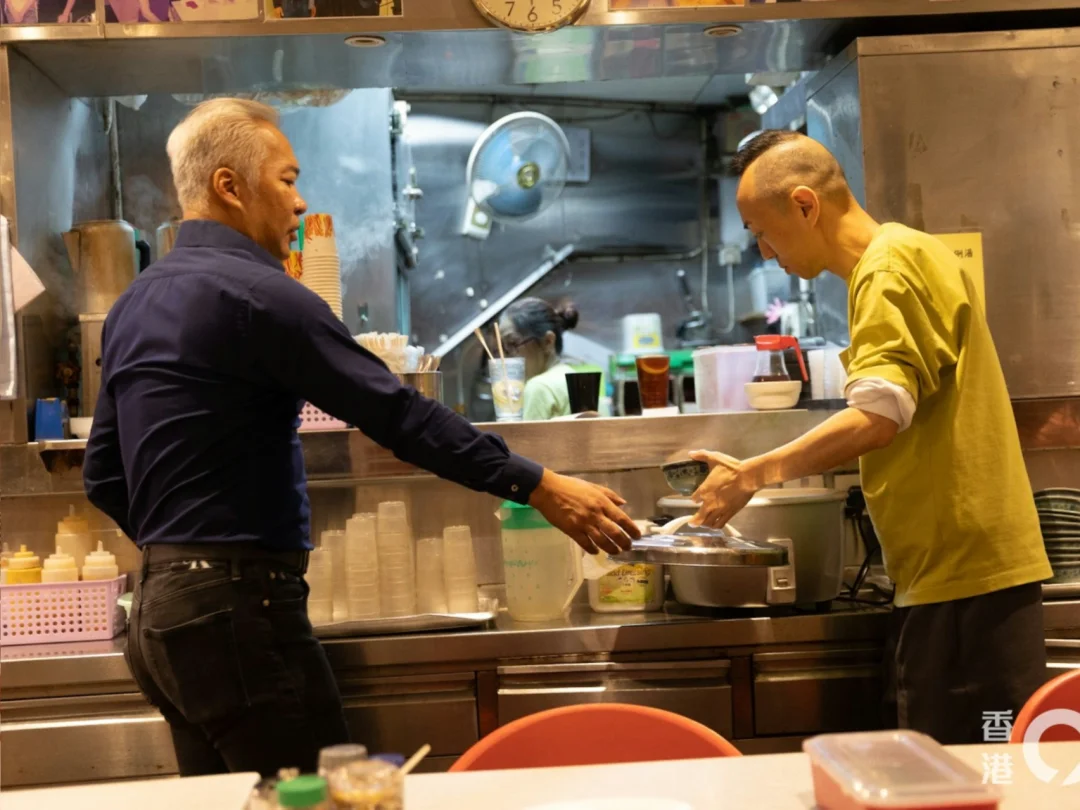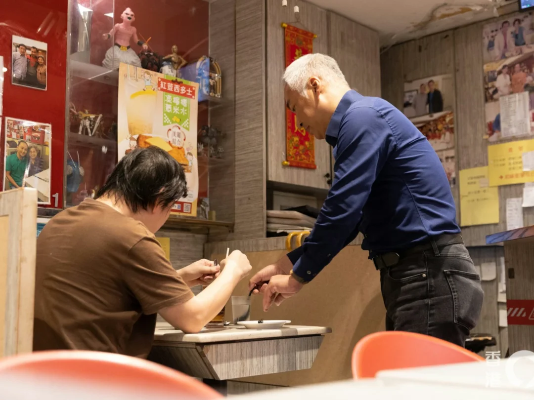 提到有否目睹食客認出戴耀明,他說:「梗係有啦!但係啲小朋友就未必認到佢,因為就覺得佢頭髮古怪,但係有啲30至40歲嘅人見到佢就好開心。」講到戴耀明是否屬於自己的徒弟,他幽默回應:「咁又唔好咁講,其實拍戲我係跟佢學嘢,如果做樓面就分享我嘅經驗俾佢。」他透露有望與戴耀明一齊在電台節目中合作。