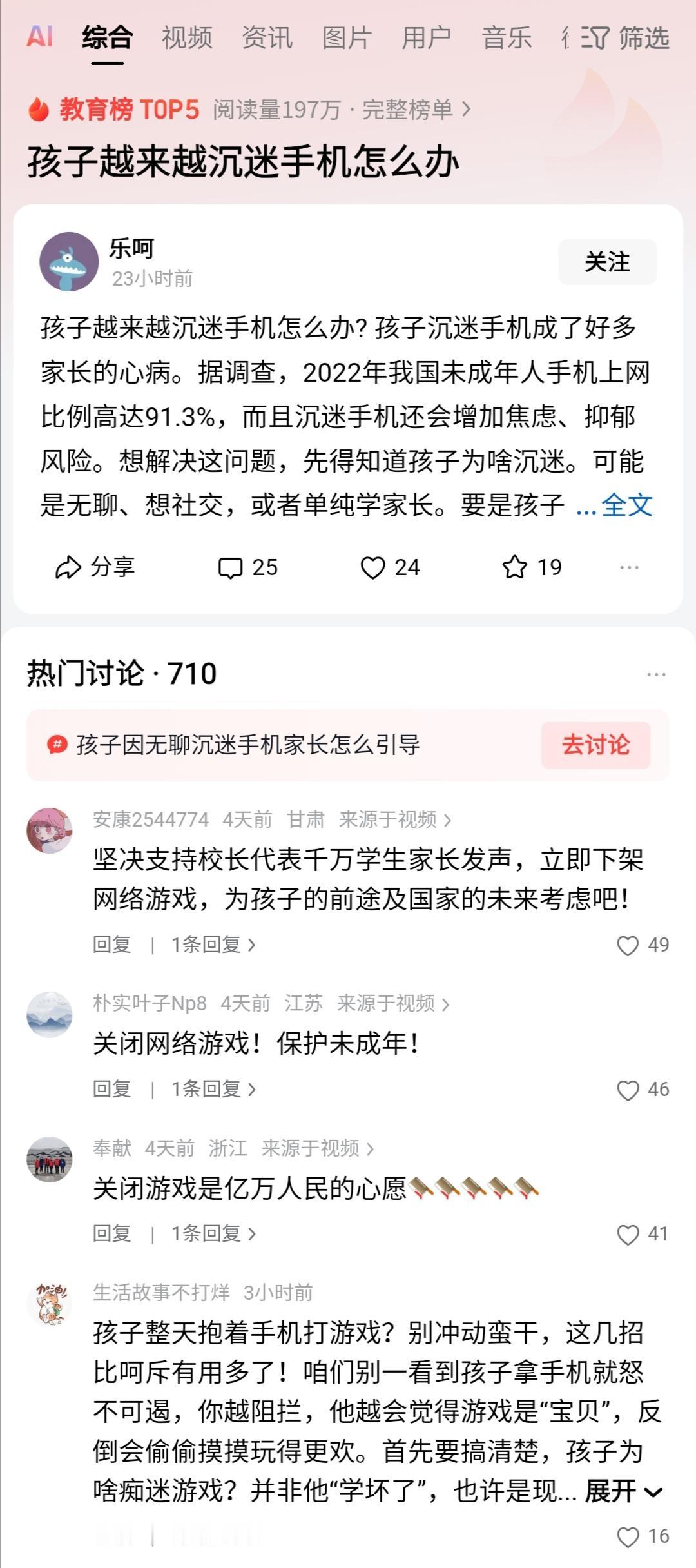 针对孩子沉迷手机、游戏,不少家长呼吁,下架所有网络游戏,禁止未成年人购买、使用智