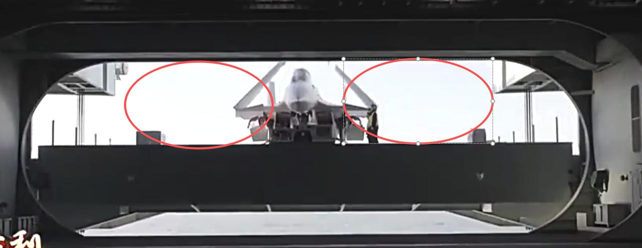 战时,感觉升降台一次能转运两架歼-35。 仔细看图中的歼-35,摆在正中间的话,两边还有非常大的空余。 图中的两个红圈,跟图中的歼-35,是一样的大小。再仔细看两个红圈的两侧,相互之间,既有空隙,两侧也有很大的空隙。 如果是战争时期,实现紧急转运的话,同时运送两架,完全可以实现。