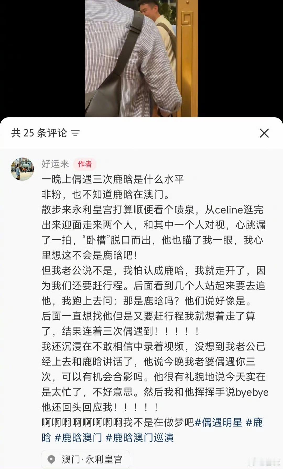家人们谁懂啊!这辈子运气全用在这晚了!第一次撞见鹿晗时他走得飞快,我还没反应过来